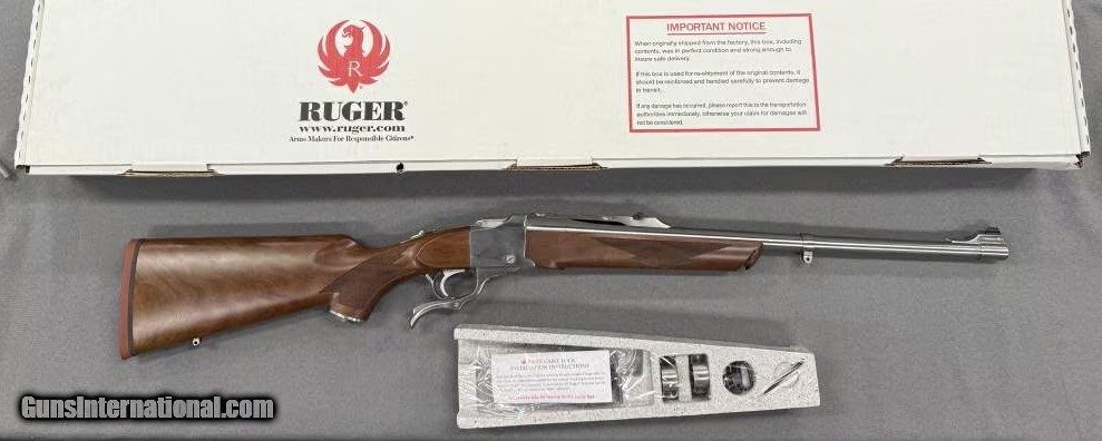 Description: Guns Listing ID: 527528 Ruger No.1 Satin Stainless, 22\" Barrel, Beautiful Wood Stock, in .35 WHELEN Manufacturer: RUGER Model: NO. 1 Caliber Info: .35 WHELEN Condition: new Barrels: 22" BARREL Action: SINGLE SHOT Finish: stainless/ walnut Price: $2,241.99 Contact Seller |