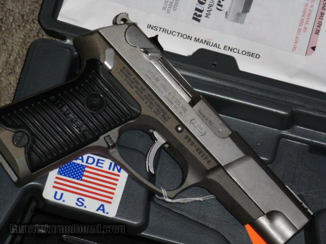 Description: Ruger model P-89 stainless 9mm pistol. New in the box. comes with factory box and all paperwork, and one double stack magazine. serial #309-42124 SOLD |