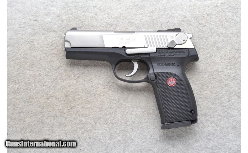 Description: This Ruger Model P345 is a right hand semi-auto pistol in .45 ACP Cal. It has a 4 inch barrel with a rear serrated two-tone stainless steel slide. A blade front and notch rear sight. The grip is a checkered black polymer. .45 ACP SOLD Chambers: Semi-Auto 7 round magazine. Metal Condition: Very good with some minor stain marks. Bore Condition: Very Good. Barrels: 4 inch barrel with a rear serrated two-tone stainless steel slide. Triggers: Single Action / Double Action Weight: 30 Oz. Sights: Blade front. Notch rear. Item Location: Richfield, WI |