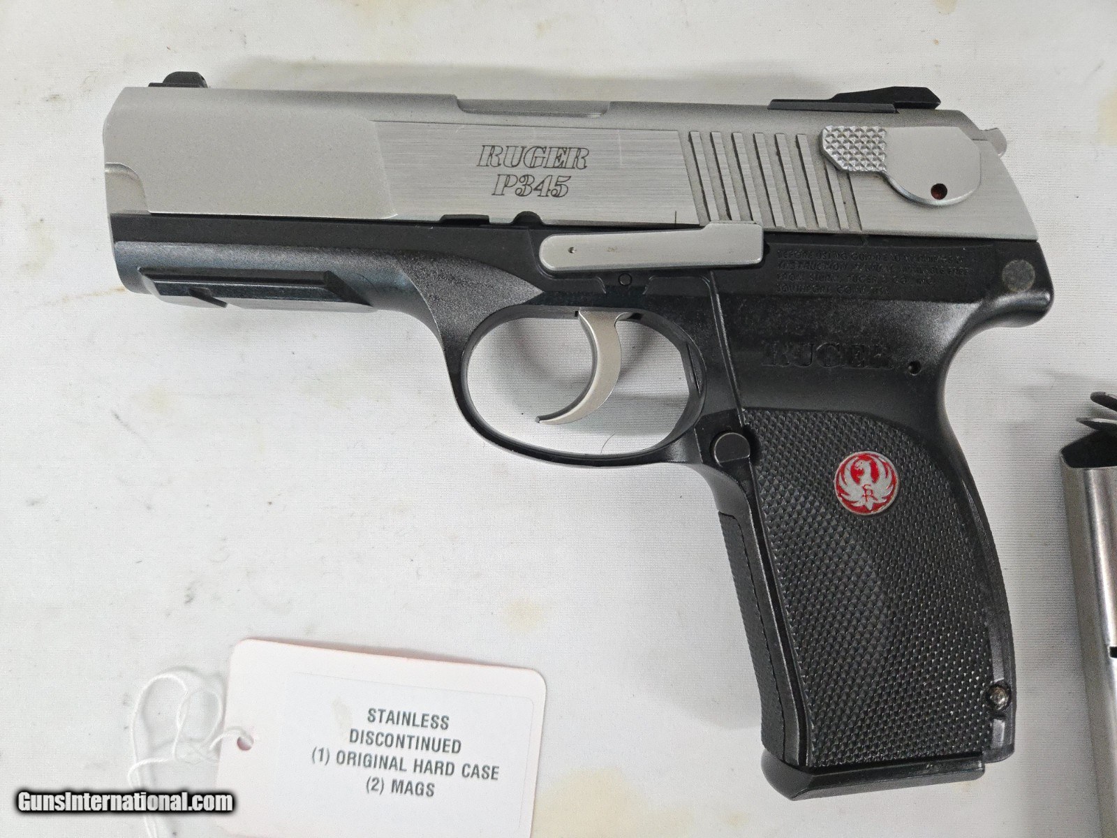 RUGER P345 Stainless w/2 Mags, Original Hard Case, Manuals .45 ACP