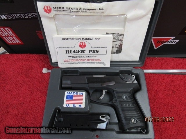 Description: Guns Listing ID: 902141 PRE OWNED UNFIRED AS NEW IN BOX STURM RUGER P89 9MM 4\" BARREL AMBI SAFETY/DECOCKER AMBI MAG RELEASE 2 FACTORY 15 ROUND MAGAZINES SOLD Manufacturer: RUGER Model: P89 9mm w/ 2 mags Caliber Info: 9 MM Condition: Used - Non-Certified Barrels: 4 BARREL Finish: BLK |