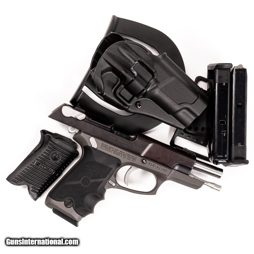 Description: Guns Listing ID: 313353 The Ruger P89 is a well-rounded semi-automatic handgun known for its excellent performance and incredible durability. Production for this model stopped in 2013, but they are still the go-to sidearm for many individuals. This P89 has a safety de-cocker and Hogue rubber grips. It is in very good condition, with marks and a couple of scratches on the slide. Purchase includes two 10-round magazines, one 15-round magazine, and a belt/paddle back right-handed Blackhawk Serpa holster. SOLD Manufacturer: RUGER Model: P89 Caliber Info: 9MM LUGER Condition: Used - Certified Barrels: 4.5 BARREL Finish: TWO-TONE |