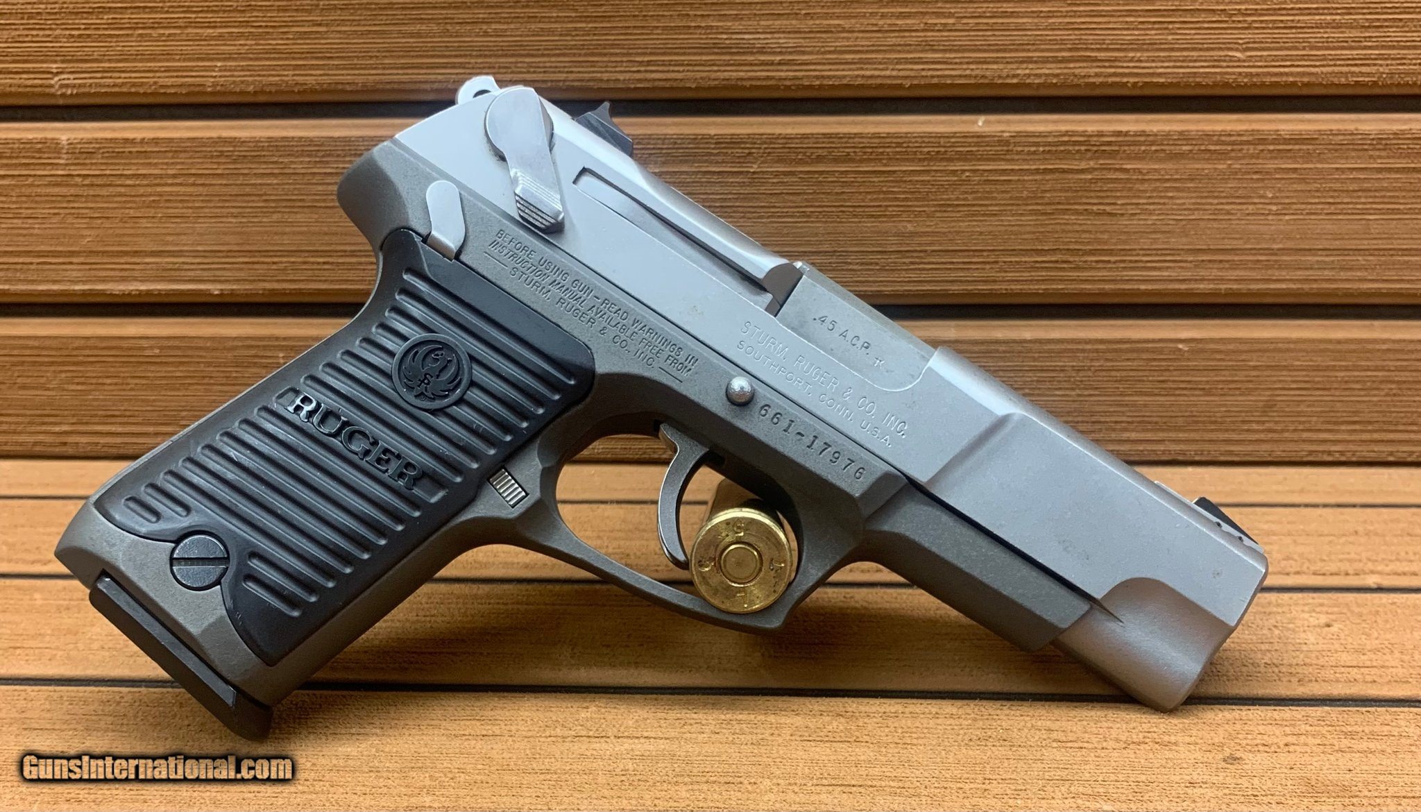 Description: Guns Listing ID: 531345 STURM RUGER & CO. INC. RUGER P90. .45 ACP. PRE-OWNED, NO BOX SOLD Manufacturer: RUGER Model: P90 Caliber Info: .45 ACP Condition: Used - Non-Certified Barrels: 4 BARREL Action: SEMI AUTOMATIC Finish: black and gray |