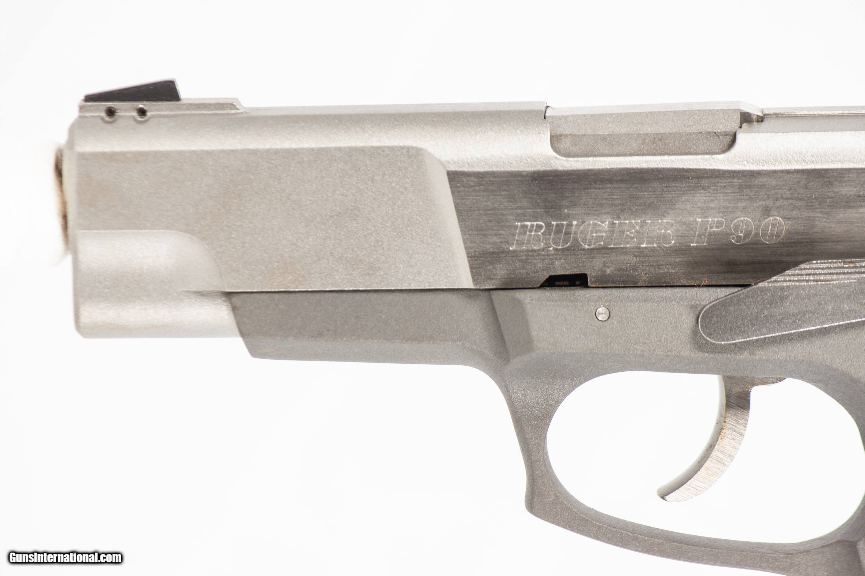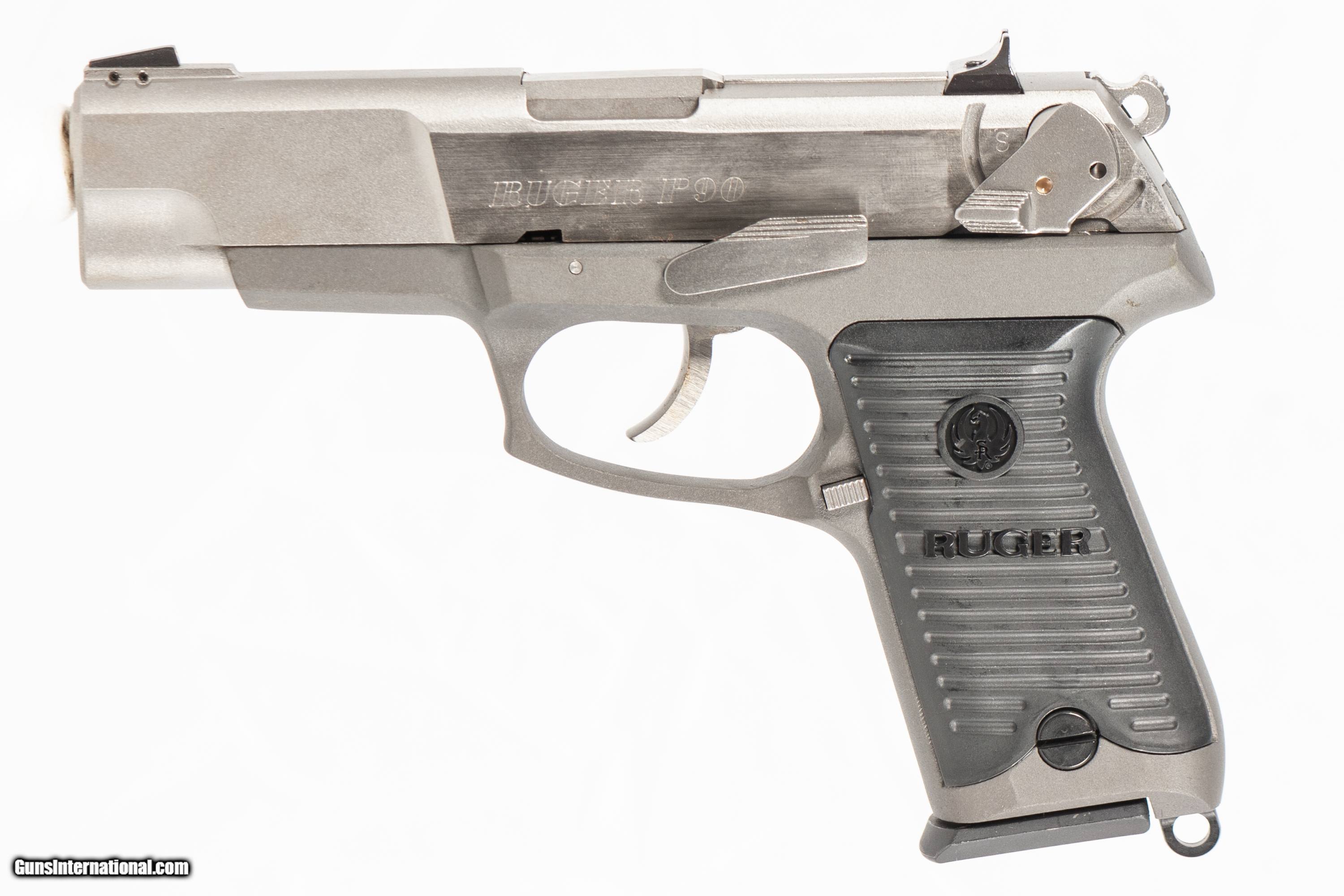 Description: Ruger P90 chambered in 45 acp with a 4 1/2 inch barrel and a bright & shiny bore. This firearm is in excellent condition and is covered by Dury's Lifetime Warranty.