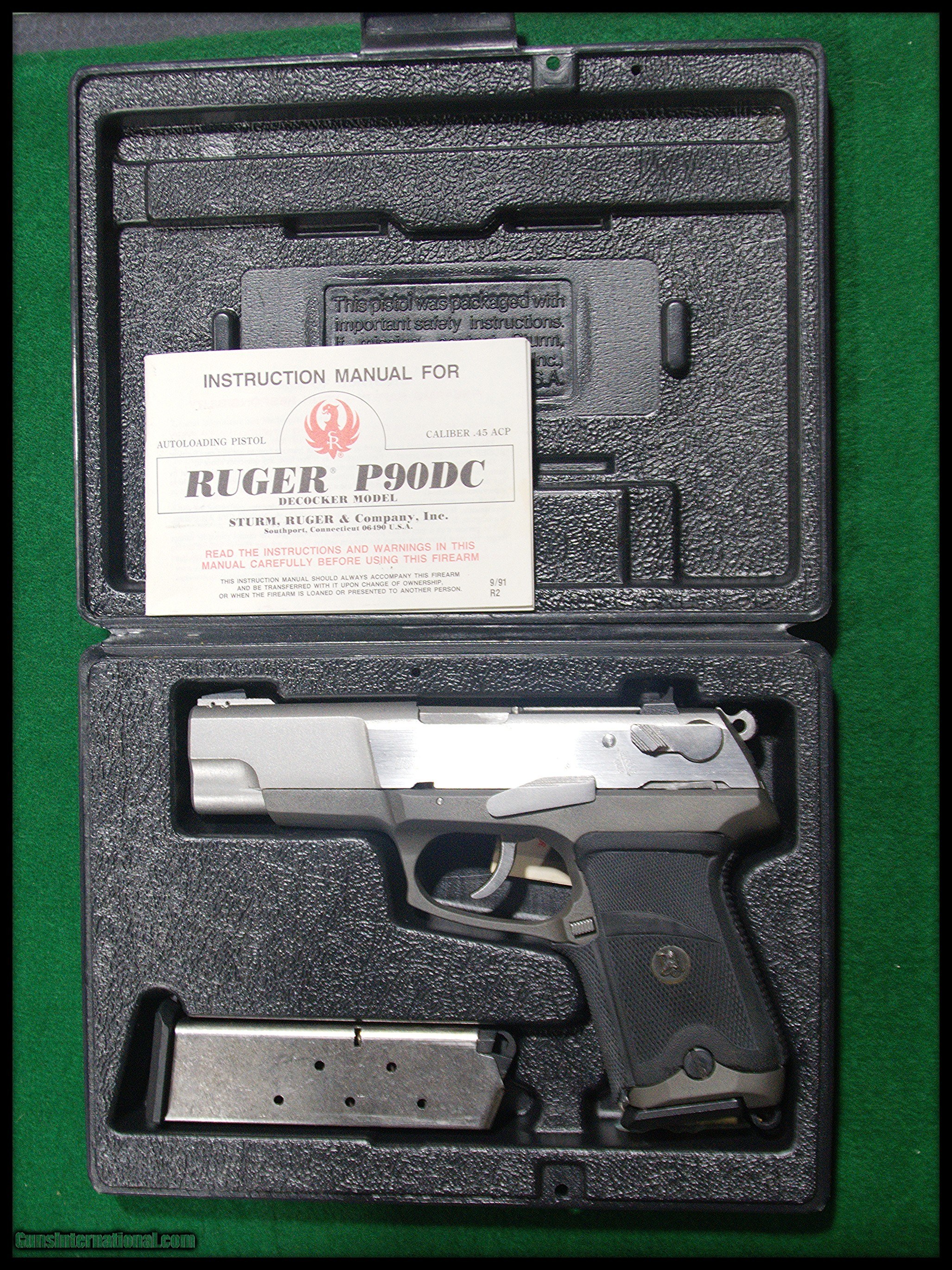 Description: Ruger P90DC in .45 ACP 98% condition with box and paperwork. Decocker model of Rugers first forray into .45ACP pistols. Handgun Caliber: .45 ACP (.45 Auto) Price: $400.00 Shipping: $75.00 Contact Seller |