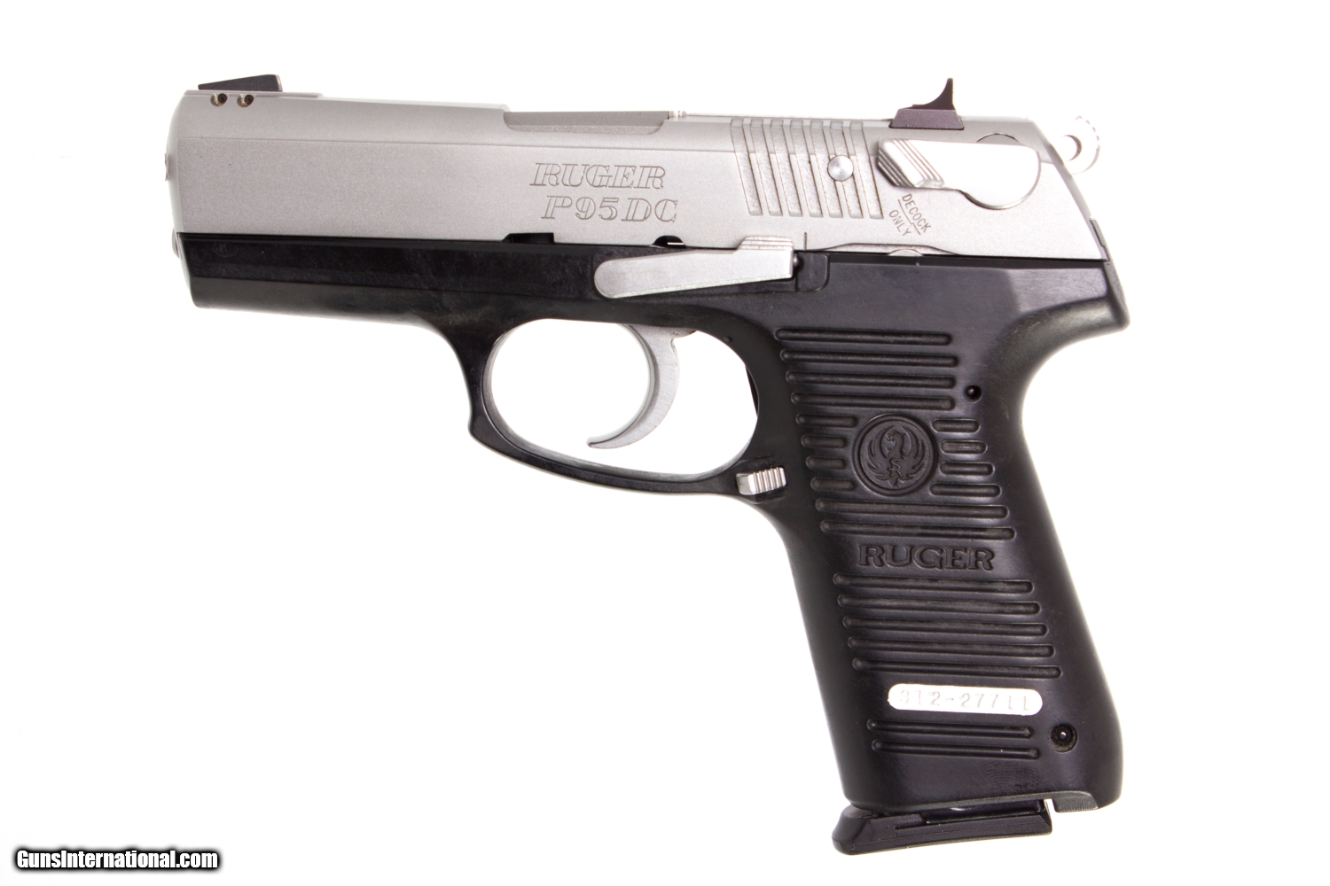 RUGER P95DC 9MM 4 INCH BARREL WITH FIXED HIGH VISIBILITY 3 DOT SIGHTS . STAINLESS STEEL SLIDE WITH AMBIDEXTROUS DECOCKER LEVER. BLACK POLYMER GRIP FRAME WITH AMBIDEXTROUS MAGAZINE RELEASE. COMES WITH A CASE AND AN EXTRA MAGAZINE. This gun is in excellent condition and is covered by Dury's Lifetime Warranty.