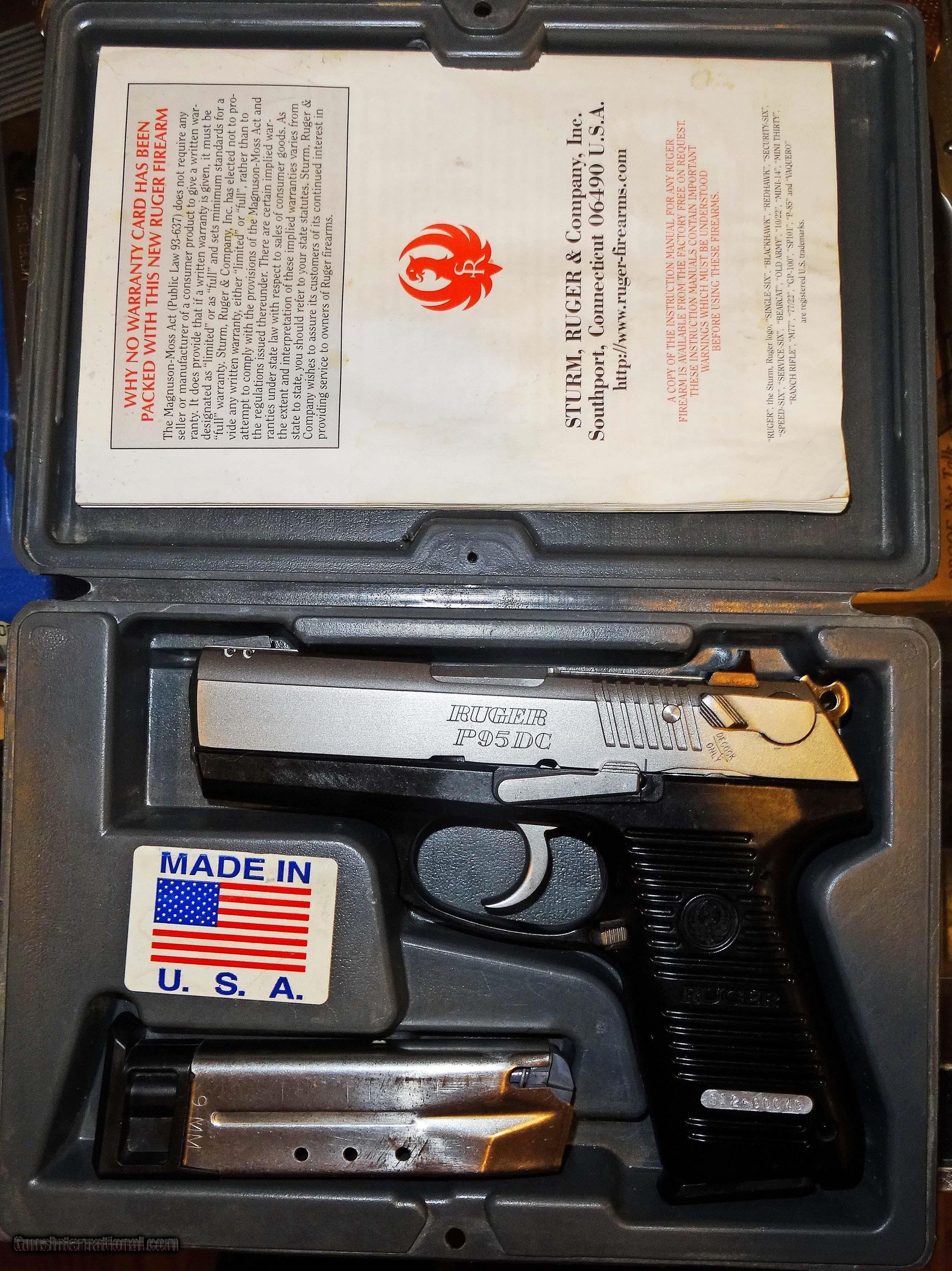 Description: RUGER P95DC IN 9MM CAL., WITH 3 1/2" BARREL. COLOR TWO TONE. CONDITION 95%. SERIAL NUMBER 312-90049. RUGER MODEL P95DC, BRIGHT SHINY BORE, GRIPS EXCELLENT, COMES WITH TWO FACTORY MAGAZINES, BOX AND PAPERS, 95% OVERALL CONDITION, OUR STOCK # D948. SOLD |