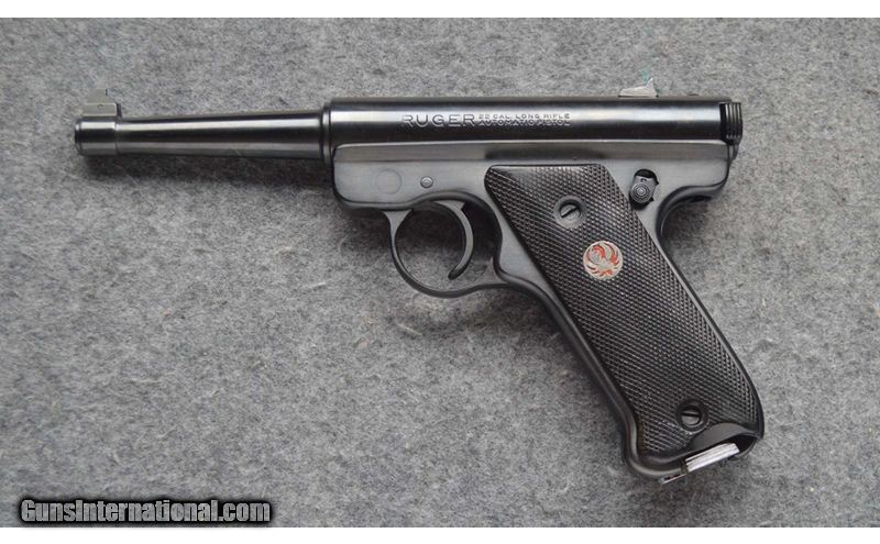Description: This firearm is a Ruger standard chambered in .22 LR with a semi-auto action. It was designed to be similar to rifles with a bolt inside a tubular receiver. It operates with basic blow-back action. The grips still have some of the red original paint on the Ruger logo. .22 Long Rifle SOLD Chambers: Semi auto pistol with a 10 round magazine. Metal Condition: Few noticeable handling marks. Barrels: 4.2" blued barrel. Sights: Fixed front blade fixed rear. Item Location: Sidney, NE |