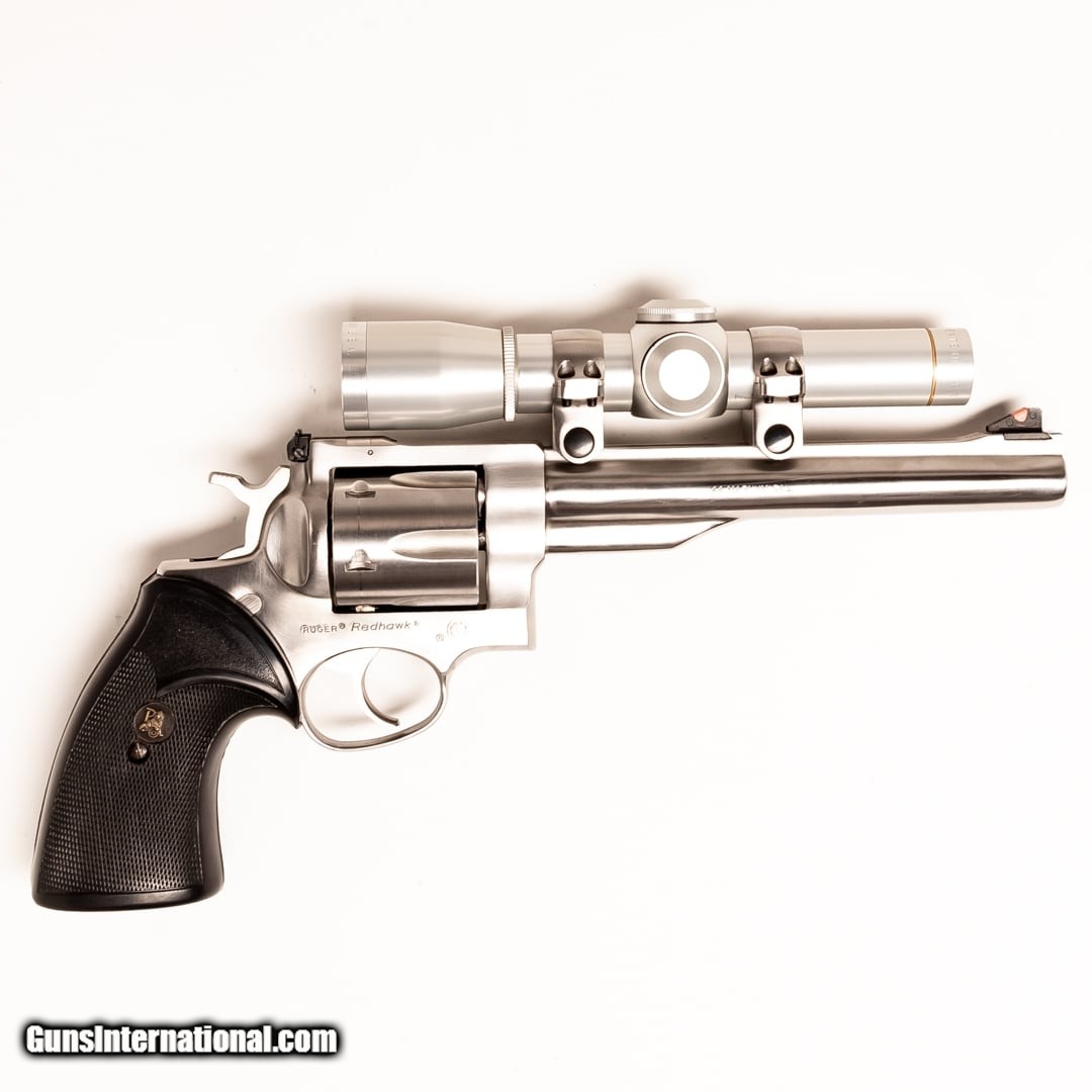 Description: Guns Listing ID: 598576 An excellent hunting revolver that can bring down North American game, the Ruger Redhawk is a powerful and enduring weapon. It delivers six rounds of 44 Mag. This Redhawk features a Leupold M8-2x extended ER scope. SOLD Manufacturer: RUGER Model: REDHAWK Caliber Info: .44 MAGNUM Condition: Used - Certified Barrels: 7.5 BARREL Finish: STAINLESS |