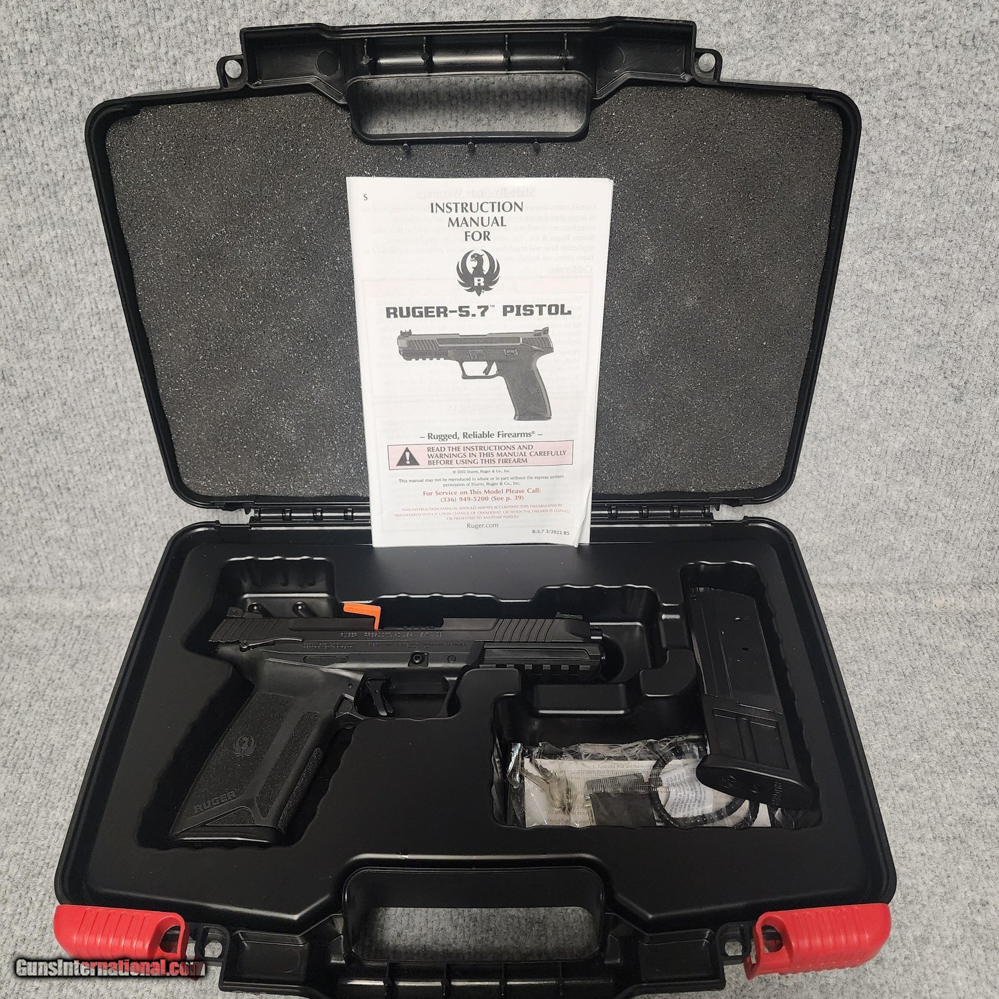 Description: Guns Listing ID: 563007 Used but NEW. Never fired Ruger-57 Pistol with 2ea - 10rnd magazines and factory box. Come stock with a Green Fiber Optic front sight, adjustable rear sight and cut slide. Ruger‚s safe, reliable and proven Secure Action fire-control system that combines a protected internal hammer with a bladed-safety trigger. The trigger has a short, smooth pull, clean break and positive reset. Safety features include: 1911-style ambidextrous manual safety; an integrated trigger safety; light-weight firing pin; neutrally balanced sear; and hammer catch. The Ruger-57 also features inspection port and Picatinny-style accessory rail for easy mounting of lights and lasers. Inspected by our certified armor and function tested, This Ruger 57 is a hoot to shoot! SOLD Manufacturer: RUGER Model: RUGER 57 10RD 2-PACK Caliber Info: 5.7X28MM Condition: Used - Non-Certified Barrels: 5" BARREL Action: SEMI AUTOMATIC Finish: blued |