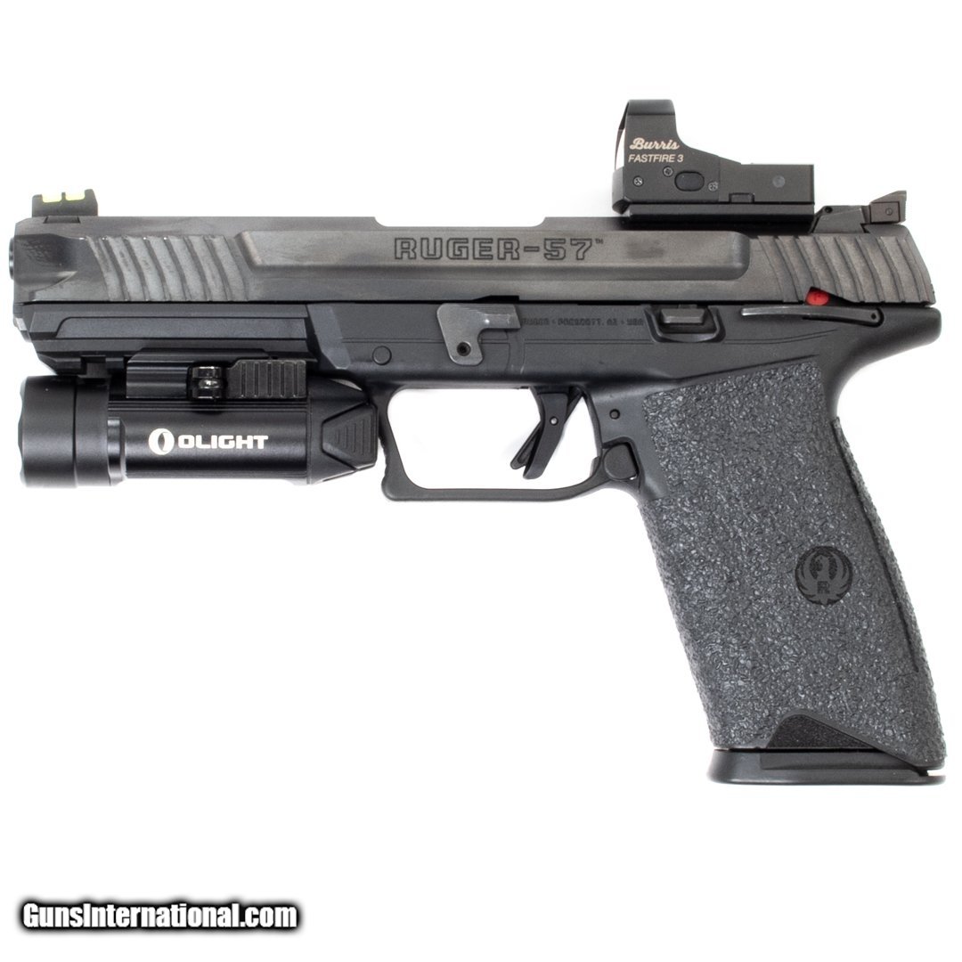 Description: Guns Listing ID: 537072 This optics ready Ruger comes with five 10-round magazines, the original case, an ambidextrous safety, an adjustable rear sight, a fiber optic front sight and it‚‚s equipped with an Olight Valkyrie PL-2 flashlight and a Burris Fastfire 3 red dot optic. Get the best bang for your buck when you get a Certified Used Firearm . When you see the Certified Used stamp on any of our firearms, you can be confident that you’re getting exactly what you want – a gun only in very good to excellent condition and held to the highest quality standard. All Certified Used Guns come with a ‘no questions asked’ return policy . PLUS, ALL CERTIFIED USED GUNS SHIP FREE SOLD Manufacturer: RUGER Model: RUGER-57 Caliber Info: 5.7X28MM Condition: Used - Certified Barrels: 5.00 BARREL Action: SEMI AUTOMATIC Finish: black Weight: 1.6 |