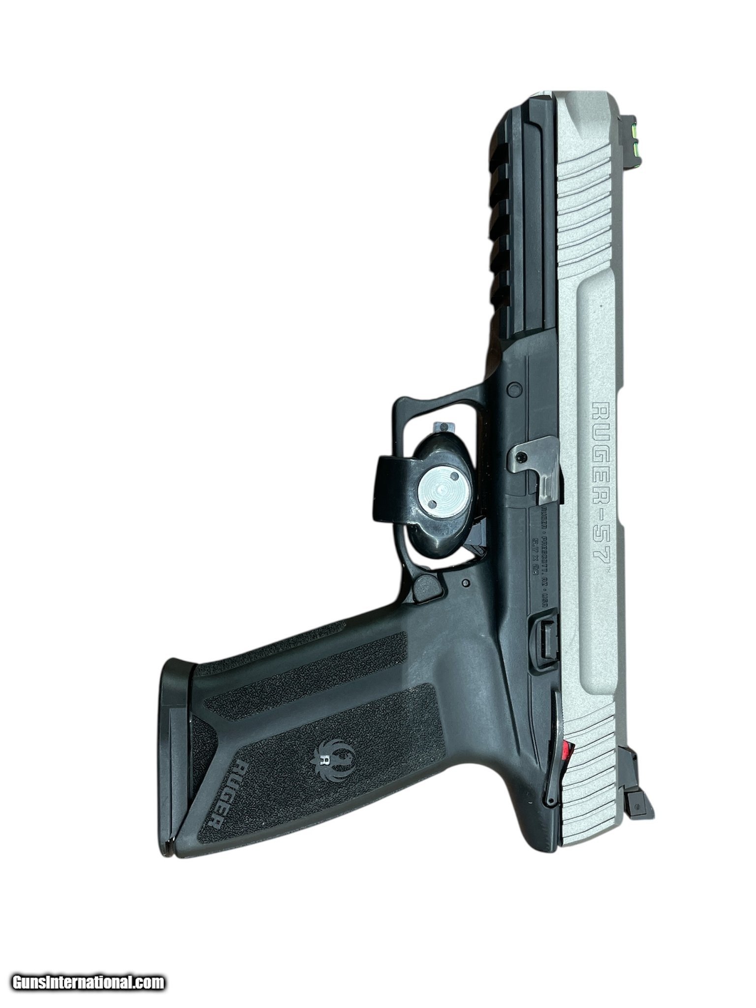 Description: Guns Listing ID: 591786 Ruger 57 5.7 x 28mm Pistol. Boasting a magazine capacity of 20+1 rounds and a 4.94-inch barrel length, this pistol operates with a Double Action Only (DAO) action. Designed with ambidextrous safety features and a durable polymer frame with a Picatinny Rail. The sleek black polymer grips provide a comfortable yet firm hold. This pistol features a fiber optic sight configuration, including a front sight and adjustable rear sight, with a savage stainless steel cerakoted slide and an overall length of 8.65 inches. Comes with two 20 round magazines and factory hard case. Manufacturer: RUGER Model: RUGER-57 Caliber Info: 5.7X28MM Condition: Used - Non-Certified Barrels: 4.94" BARREL Action: DOUBLE ACTION Finish: SILVER AND BLACK Weight: 1.4 lbs. Price: $529.99 Contact Seller |