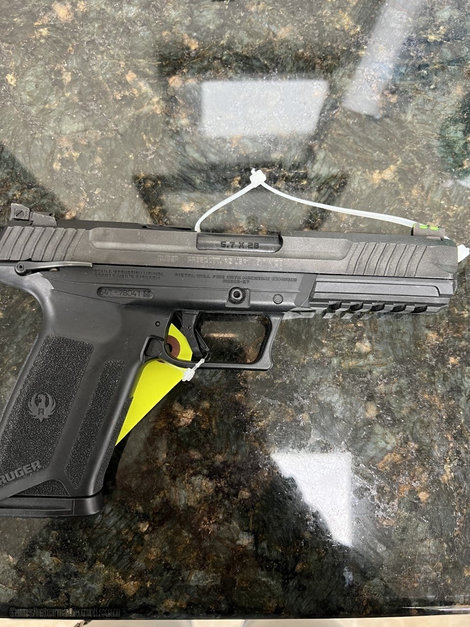 Description: Guns Listing ID: 441335 USED GOOD CONDITION W/20 RND MAGAZINE SOLD Manufacturer: RUGER Model: RUGER 57 Caliber Info: 5.7 X 28MM Condition: Used - Non-Certified Barrels: 5 BARREL Finish: BLUE STEEL |