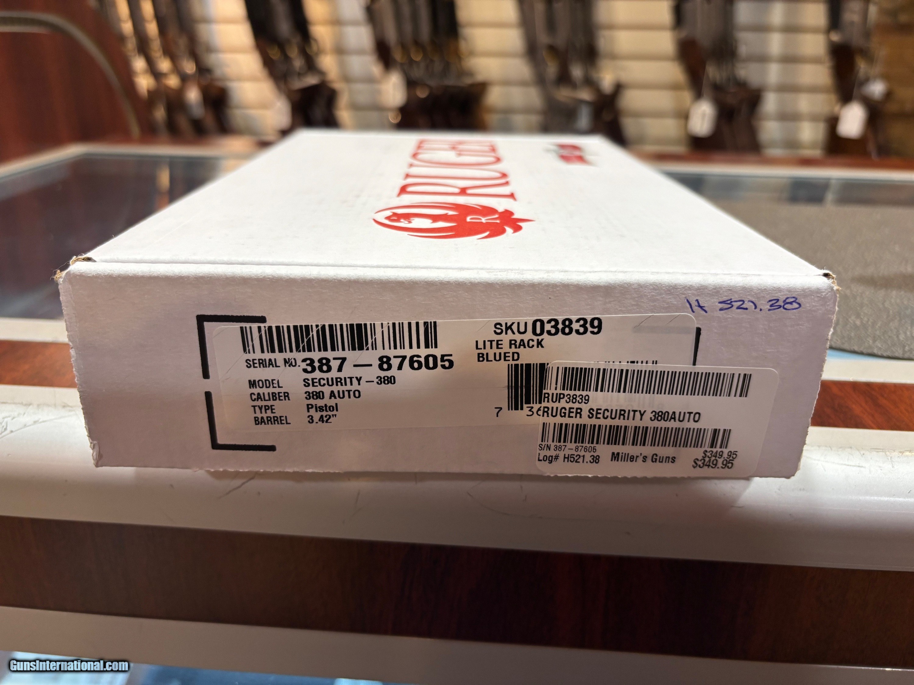 Description: Ruger Security 380 .380acp (1)15 round and (1)10 round magazine included Manual safety Fiber optic front sight Lite rack slide SOLD Handgun Caliber: .380 ACP (9x17mm Browning Short) Manufacturer: Ruger Model: Security 380 Serial Number: 387-87605 Condition: NEW |