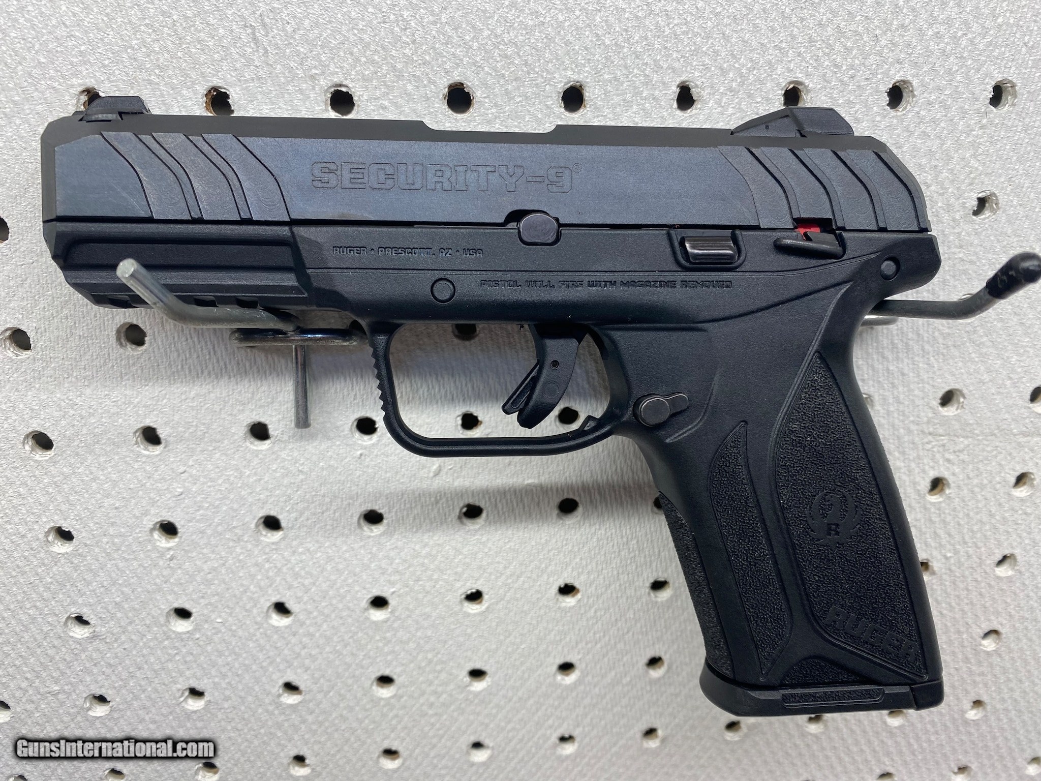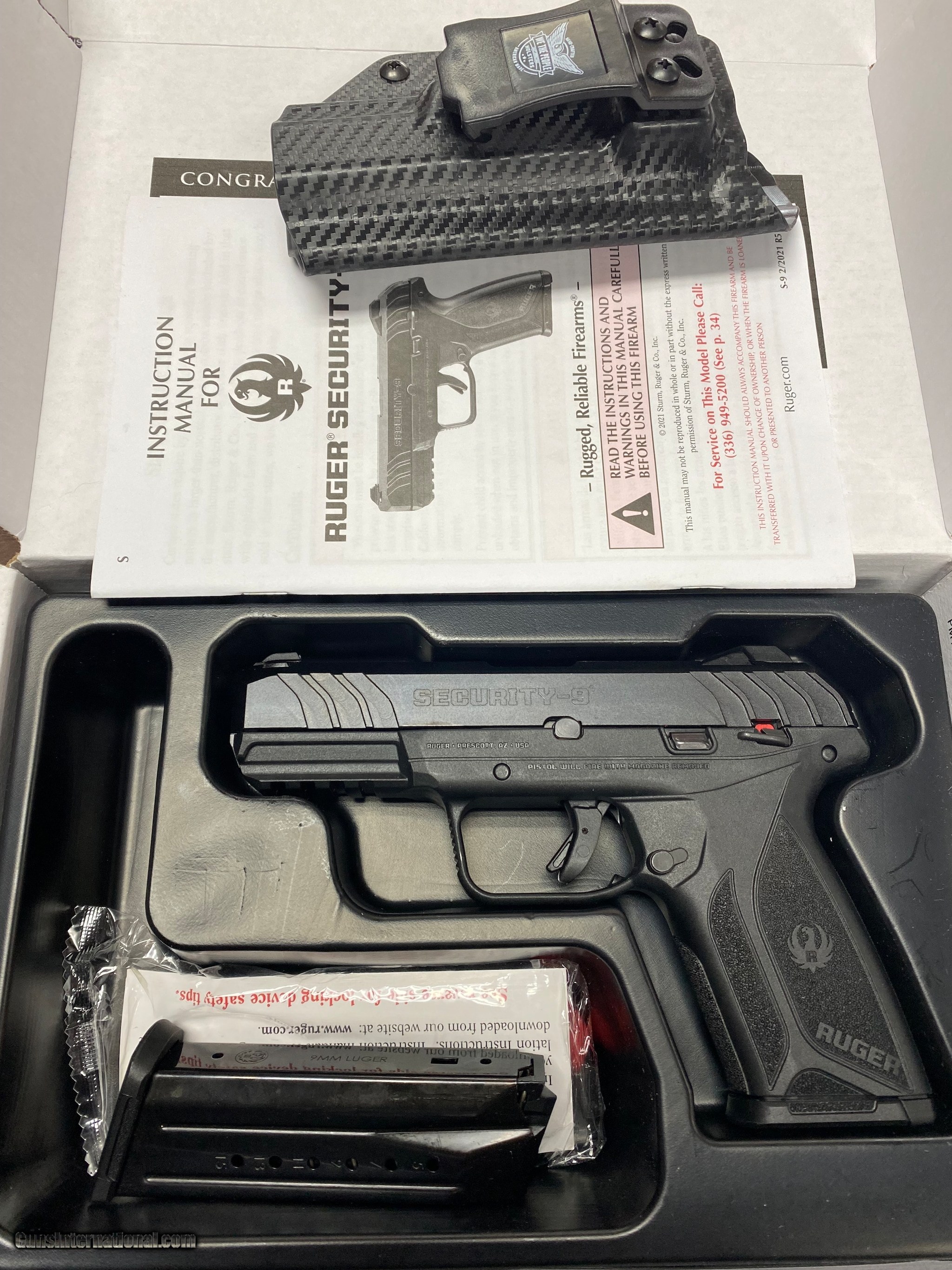 Description: Guns Listing ID: 473267 Like New in Box Ruger, Security-9, Double Action, Semi-automatic, Polymer Frame Pistol, Full Size, 9MM, 4\" Barrel, Blued Finish, 3 Dot Drift-Adjustable Sights, Manual Safety and Integrated Trigger Safety, 15 Rounds, 2 Magazines, Right Hand Kydex holster included as shown SOLD Manufacturer: RUGER Model: SECURITY 9 Caliber Info: 9 MM LUGER Condition: Used - Non-Certified Barrels: 4" barrel |