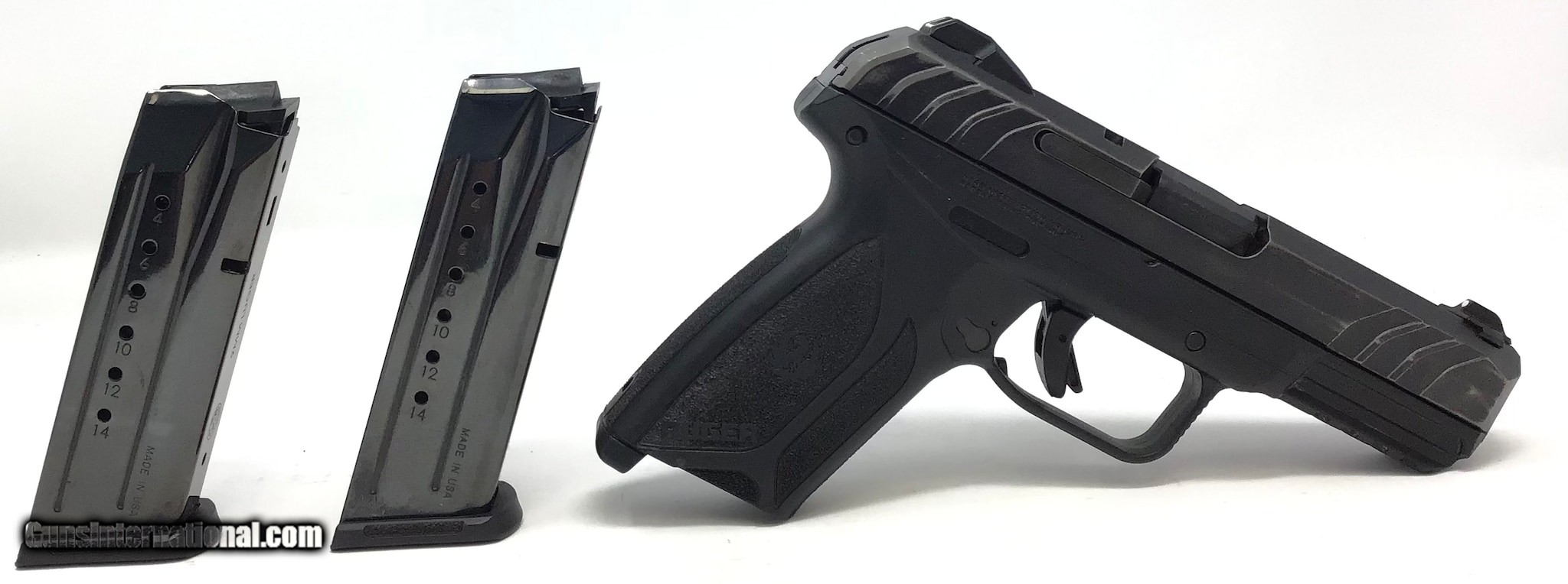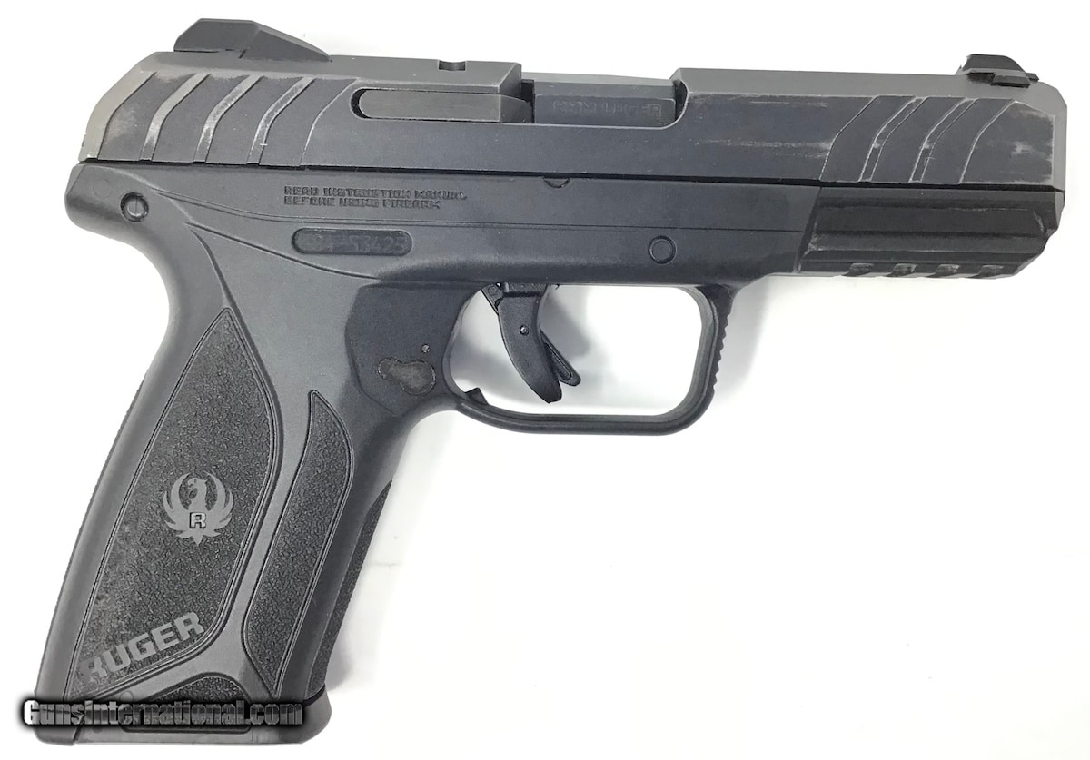 Description: Guns Listing ID: 566746 Built with a polymer frame and 4-inch barrel, the Ruger Security-9 9mm Luger Semiautomatic Pistol is topped with drift-adjustable, 3-dot sights. It also features synthetic grips, a bladed trigger safety and front cocking serrations. Compact for easy concealment, the Security-9® is designed to fit a variety of available holsters. Rugged construction with black oxide, through-hardened alloy steel slide and barrel and high-performance, glass-filled nylon grip frame. Precision-machined, hard-coat anodized aluminum chassis with full-length guide rails. Utilizes Ruger‚‚s safe, reliable and proven Secure Action™ fire-control system that combines a protected internal hammer with a bladed-safety trigger. The trigger has a short, smooth pull, clean break and positive reset. Textured grip frame provides a secure and comfortable grip. Dovetailed, high-visibility sight system with drift adjustable rear sight and fixed front sight. Sights can be easily changed out for different color options (available separately). Internal, Secure Action™ hammer provides strong ignition force, yet allows for easier slide racking when compared with many striker-fired pistols. Front cocking serrations enable positive slide manipulation. Safety features include integrated trigger safety; external manual safety; neutrally balanced sear with significant engagement and strong spring tension; and hammer catch to help prevent the hammer from contacting the firing pin unless the trigger is pulled. Safe, easy takedown with no special tools or trigger pull required SOLD Manufacturer: RUGER Model: SECURITY 9 Caliber Info: 9 MM Condition: Used - Non-Certified Barrels: 4 BARREL Finish: BLUED |