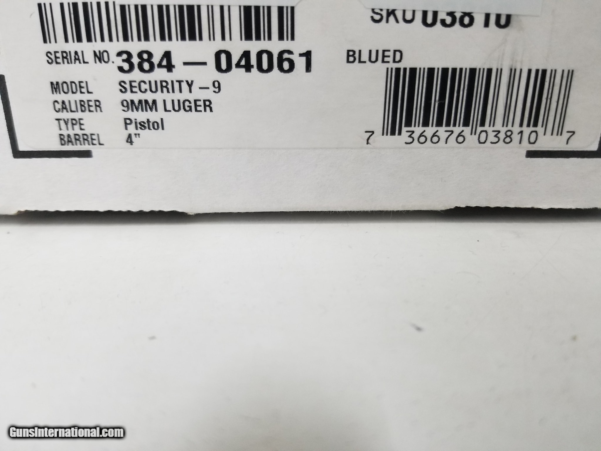 Description: Guns Listing ID: 616988 Ruger Security-9 9mm Luger Semiautomatic Pistol with a 15-round capacity Magazine. Like New Condition. In Original Box. INV# 1214051 SOLD Manufacturer: RUGER Model: SECURITY 9 Caliber Info: 9MM LUGER (9X19 PARA) Condition: Used - Non-Certified Barrels: 4" barrel |