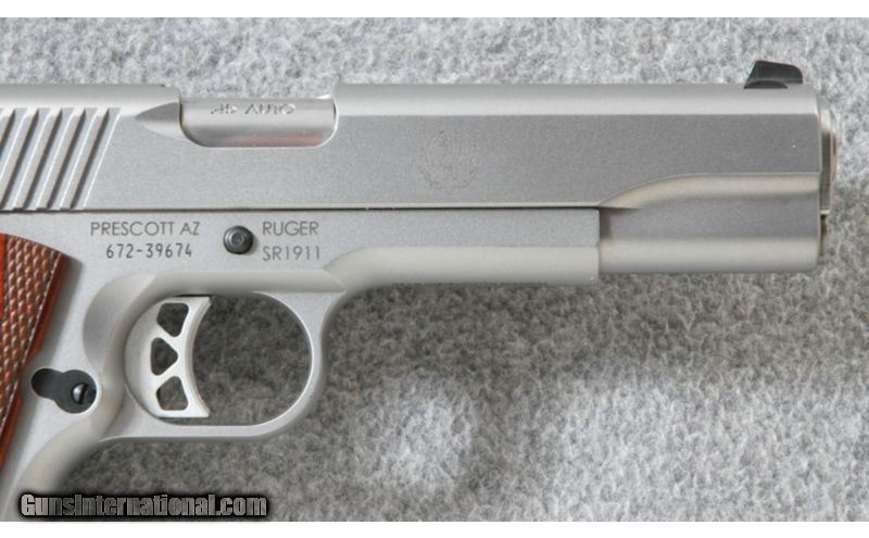 Description: A classically styled pistol loaded with practical features, Ruger's 1911 Centerfire Pistols boast fixed Novak three-dot sights, an extended magazine release, beavertail grip safety, oversized ejection port, adjustable trigger, skeletonized hammer and titanium firing pin. The stainless steel barrel and bushing are produced on the same machine and from the same bar stock for excellent accuracy. Stainless steel frame and slide have a bead-blasted low-glare finish. SOLD Caliber Info: .45acp Metal Condition: Excellent Wood Condition: Excellent Bore Condition: Excellent Barrels: 5 inch barrel with 1:16 inch twist Triggers: Lightweight, aluminum, skeletonized trigger with an adjustable over-travel stop Stock: Checkered hardwood grips Weight: 40 oz. with magazine Sights: Drift adjustable Novak 3-Dot sights Item Location: Lehi, UT |