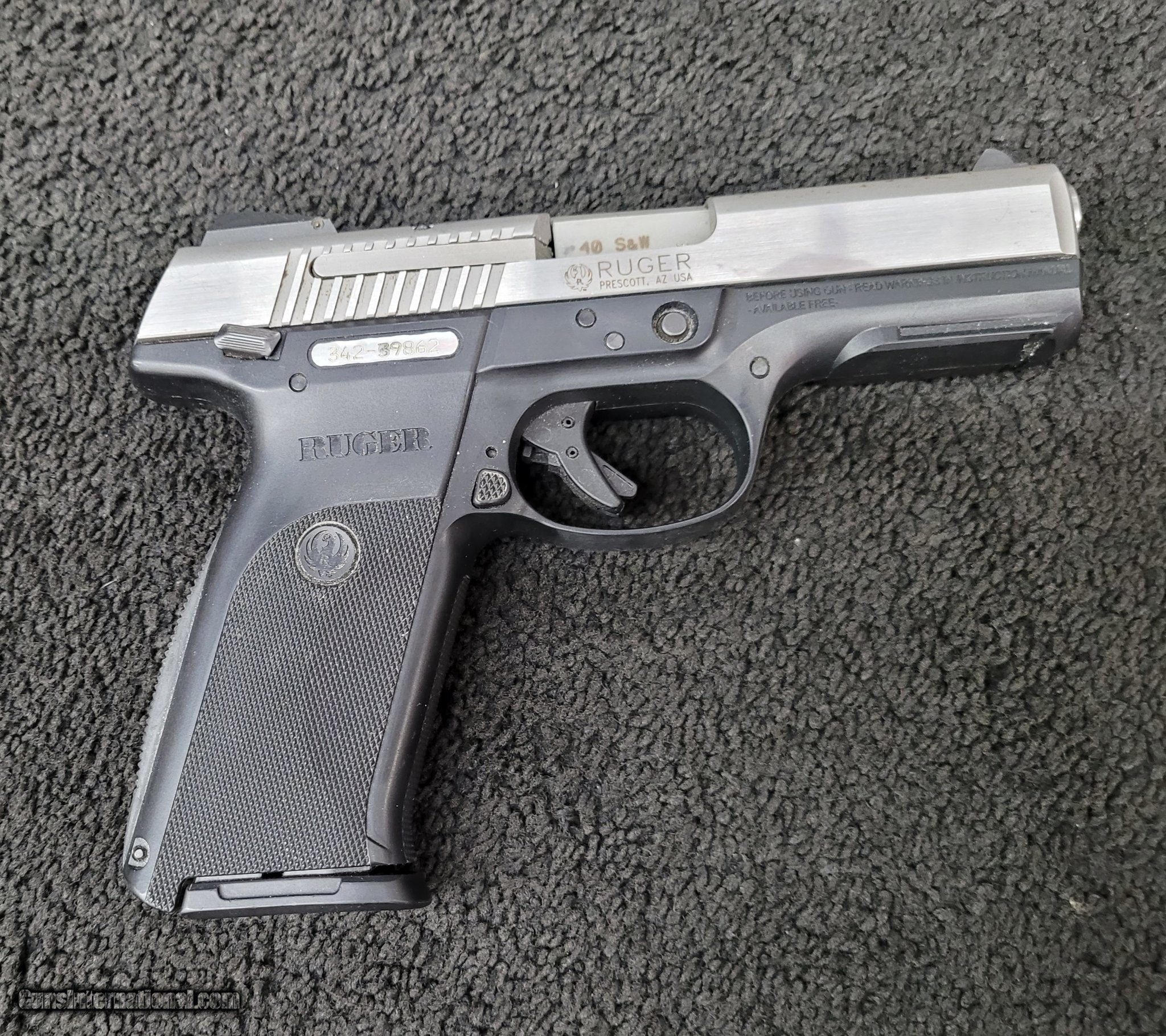 Description: Guns Listing ID: 582517 Ruger sr 40 40 s&w one fifteen round magazine cleaned and serviced SOLD Manufacturer: RUGER Model: sr 40 Caliber Info: .40 S&W Condition: Used - Non-Certified Barrels: 4" BARREL Action: SEMI AUTOMATIC Finish: black & silver |