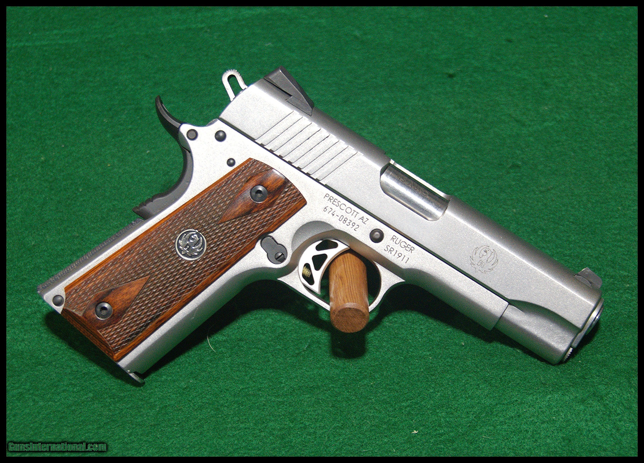 Description: Ruger SR1911 Stainless Commander, 4.25" barrel, Excellent condition with box and paperwork, Shows little evidence of use. SOLD Handgun Caliber: .45 ACP (.45 Auto) |