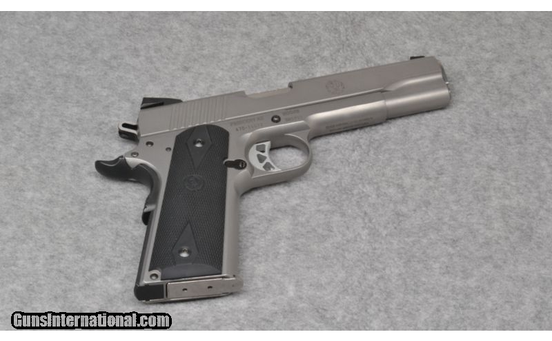Description: With box SOLD Manufacturer: S/N 670-14XXX Caliber Info: .45 Auto Metal Condition: Very Good Bore Condition: Very Good Barrels: 5 Triggers: Factory Skeleton Stock: Checkered Rubber Grips Weight: 40 oz Sights: White Dot Front and Rear Item Location: Columbus, OH |