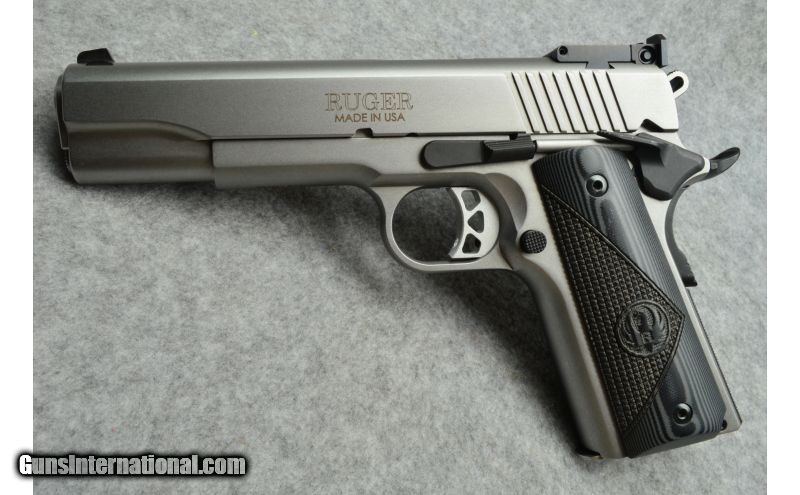 Description: Classic 1911 by Ruger in .45Auto. as close to new as you'll find in a used gun. SOLD Caliber Info: .45 Auto. Chambers: 8 Rounds. Metal Condition: Excellent, little to no handling marks. Wood Condition: Excellent, no visible flaws. Bore Condition: Excellent, Bright and shiney. Barrels: 5 Inches. Triggers: Factory, Skeletonized, adjustable with ribbed face. Stock: Factory, Laminated with moderate texture checkering and Ruger embossed logo. Weight: 40 Ounces. Sights: Factory, Adjustable rear blade front. Extras: Box, one extra mag, owners manuals, lock Item Location: Noblesville, IN |
