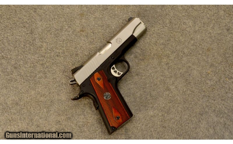 Description: This is a manufacturer direct factory blemish Ruger SR1911 Lightweight Commander being sold as pre-owned. SOLD Caliber Info: .45 Auto Metal Condition: Excellent condition, with some machine marks on the barrel. Wood Condition: Excellent condition. Bore Condition: Clean with bright lands. Barrels: 4 ¼ Stock: Diamond checkered cocobolo grips with black Ruger medallion inserts. Weight: 1 ¾ lbs. Sights: Drift adjustable Novak 3-dot sights. Extras: Comes with the factory box, manual, padlock, bushing wrench, and 2 factory magazines. Item Location: Glendale, AZ |