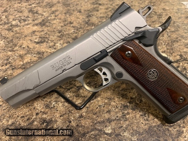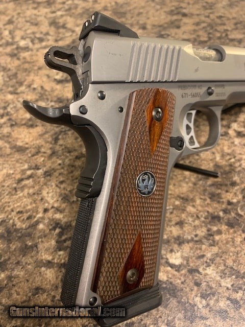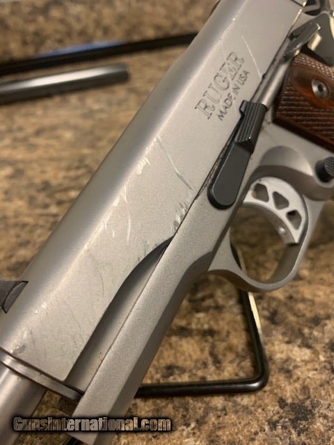 Description: Guns Listing ID: 609003 RUGER SR1911 STAINLESS STEEL / WOOD GRIPS - .45ACP - 8 ROUNDS - 5 \", Condition - USED - 80% *SCRATCHES ON LEFT SIDE BARREL, SEE PICS! SOLD Manufacturer: RUGER Model: SR1911 Stainless Steel / Wood Grips Caliber Info: .45ACP Condition: Used - Non-Certified Barrels: 5 BARREL Finish: STAINLESS |