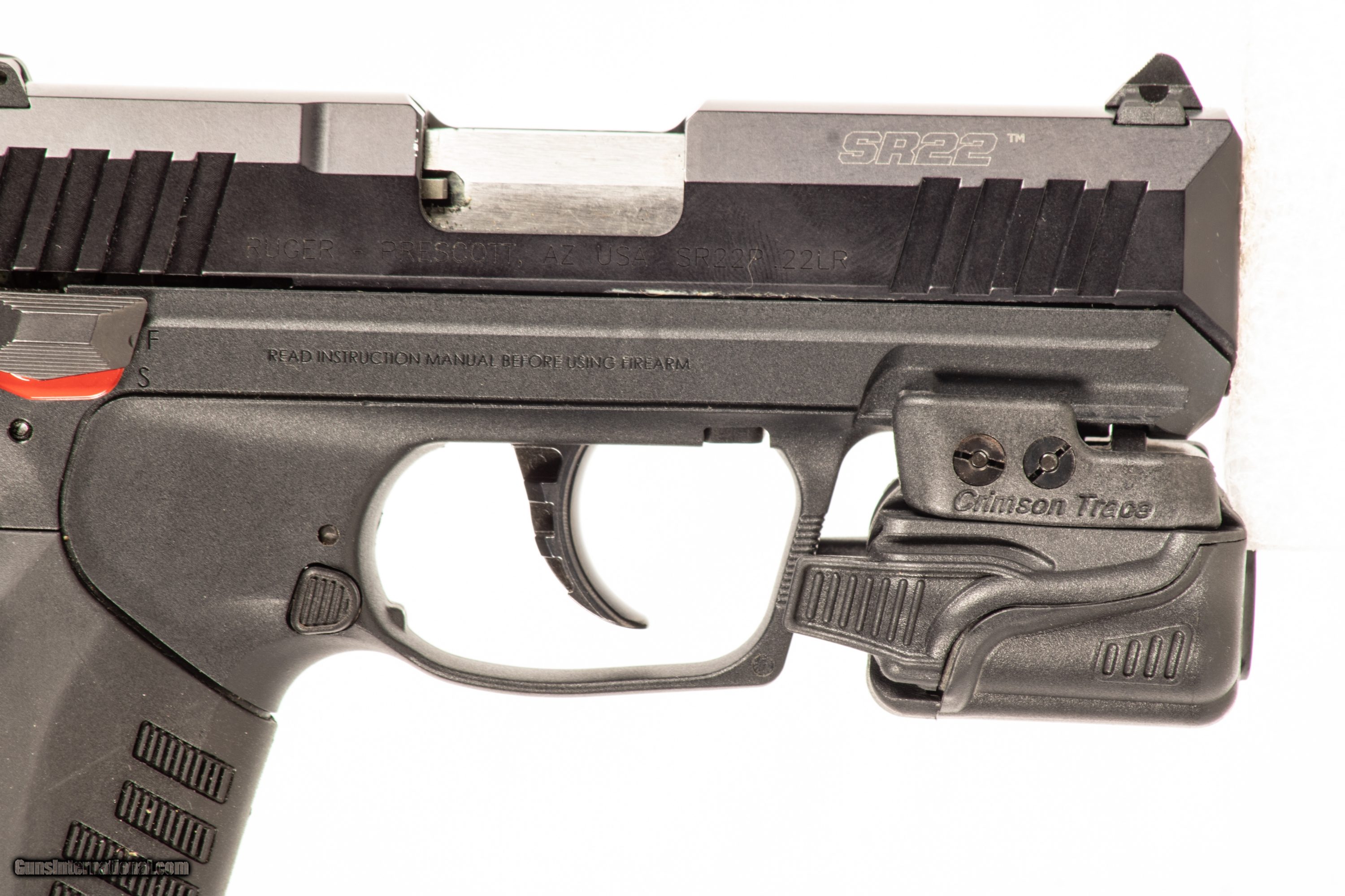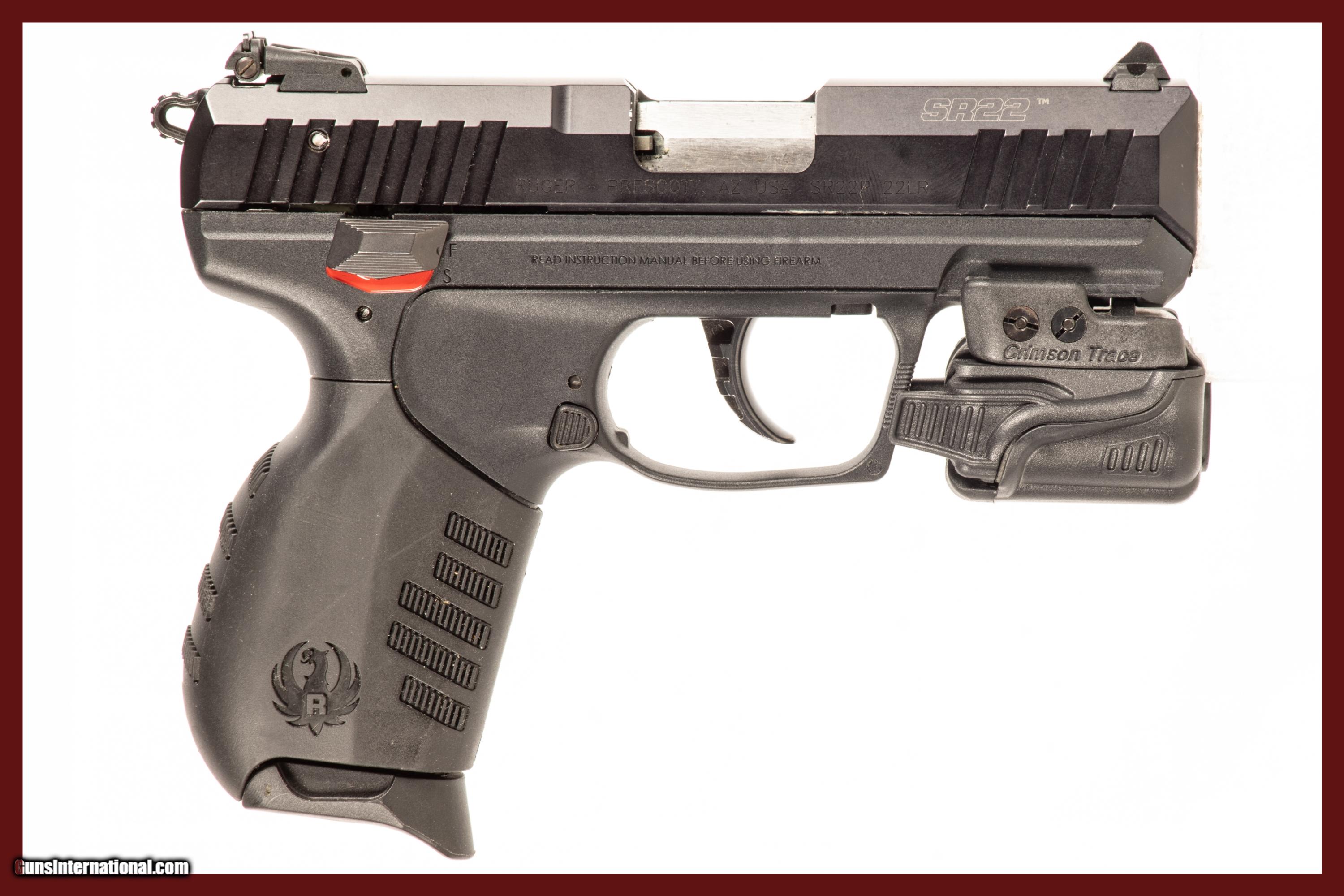 Ruger SR22 chambered in 22 Long Rifle with a 3 1/2 inch barrel bright & shiny bore box 2 extra magazines and a Crimson Trace light. This is a used firearm that is in excellent condition and is covered by Dury's Lifetime Warranty.