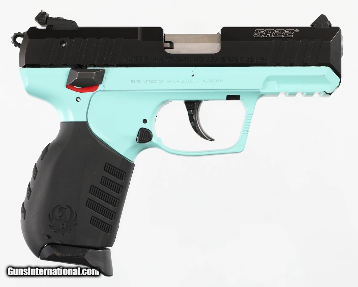 RUGER SR22 ROBINS EGG BLUE W/ MANUAL, MAGS, SPEEDLOADER & LOCK