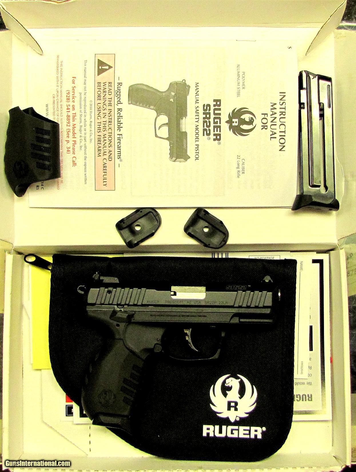 Description: RUGER model SR22 in .22 L.R. CAL., with 3 1/2" barrel. Color BLACK. RUGER MODEL SR22, COMES WITH BOX AND PAPERS, POUCH, EXTRA FACTORY MAGAZINE, EXTRA BACK STRAPS, LIKE NEW CONDITION APPEARS UNFIRED. OUR NEW STOCK # D31739 Condition LIKE NEW. Serial number 364-49488. SOLD |