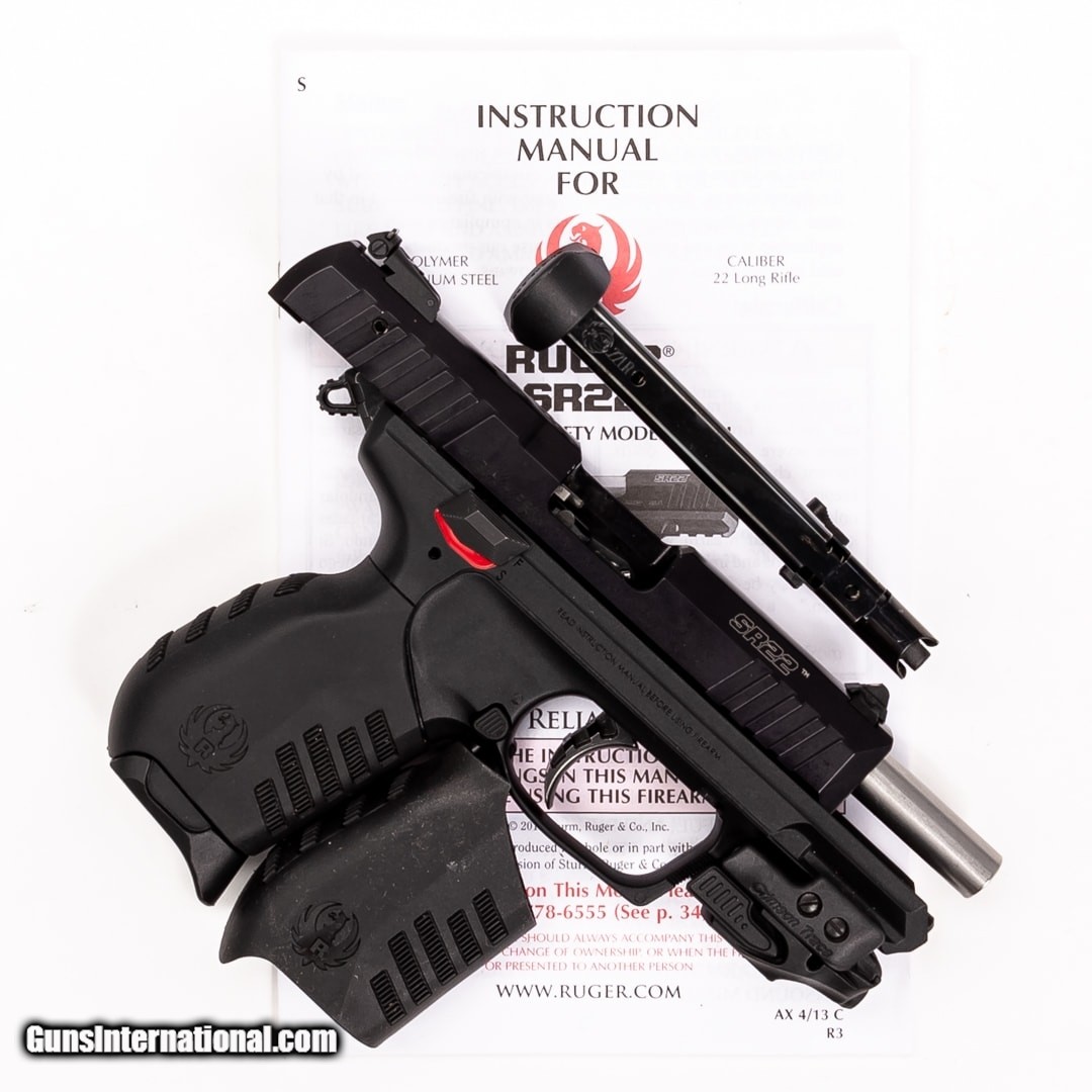 Description: Guns Listing ID: 343630 The Ruger SR22P is an affordable and dependable semi-automatic pistol chambered in 22 LR. It's great for plinking, target practice, and training. Ruger pistols are proudly made in America and are known for being both rugged and reliable. This SR22P is equipped with a rail-mounted Crimson Trace laser sight. It is in very good condition and comes with the original box, manual, two 10-round magazines, and two sizes of hand grips. SOLD Manufacturer: RUGER Model: SR22P Caliber Info: .22 LR Condition: Used - Certified Barrels: 3.5 BARREL Finish: BLACK |