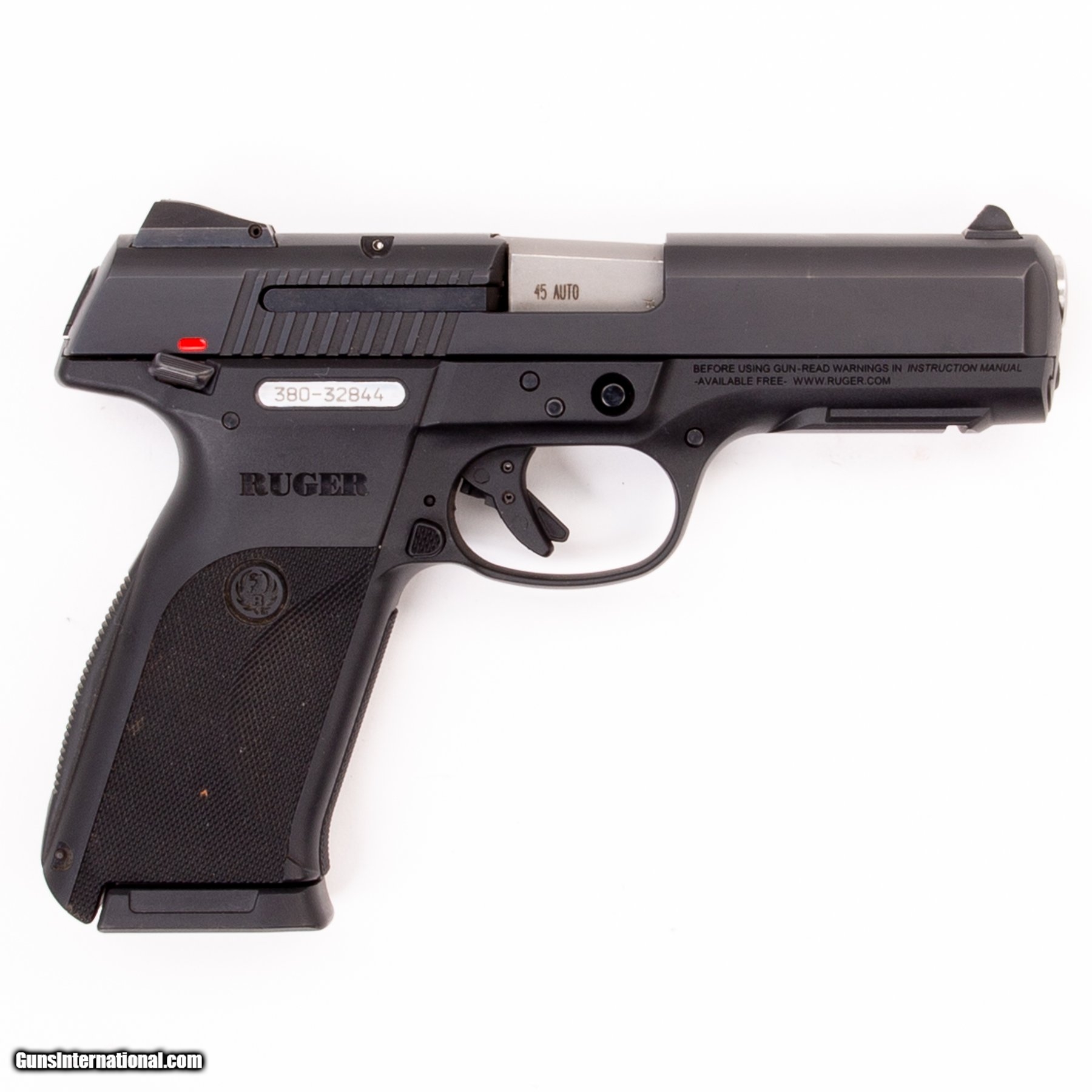 Description: Guns Listing ID: 470540 This Ruger SR45 features 3-dot sights, an ambidextrous safety, and an ambidextrous mag release. The original case and two 10-round magazines are included. Get the best bang for your buck when you get a Certified Used Firearm . When you see the Certified Used stamp on any of our firearms, you can be confident that you‚‚re getting exactly what you want – a gun only in very good to excellent condition and held to the highest quality standard. All Certified Used Guns come with a ‚‚no questions asked‚‚ return policy . PLUS, ALL CERTIFIED USED GUNS SHIP FR SOLD Manufacturer: RUGER Model: SR45 Caliber Info: .45 ACP Condition: Used - Certified Barrels: 4.50 Action: SEMI AUTOMATIC Finish: BLACK Weight: 1.8 |