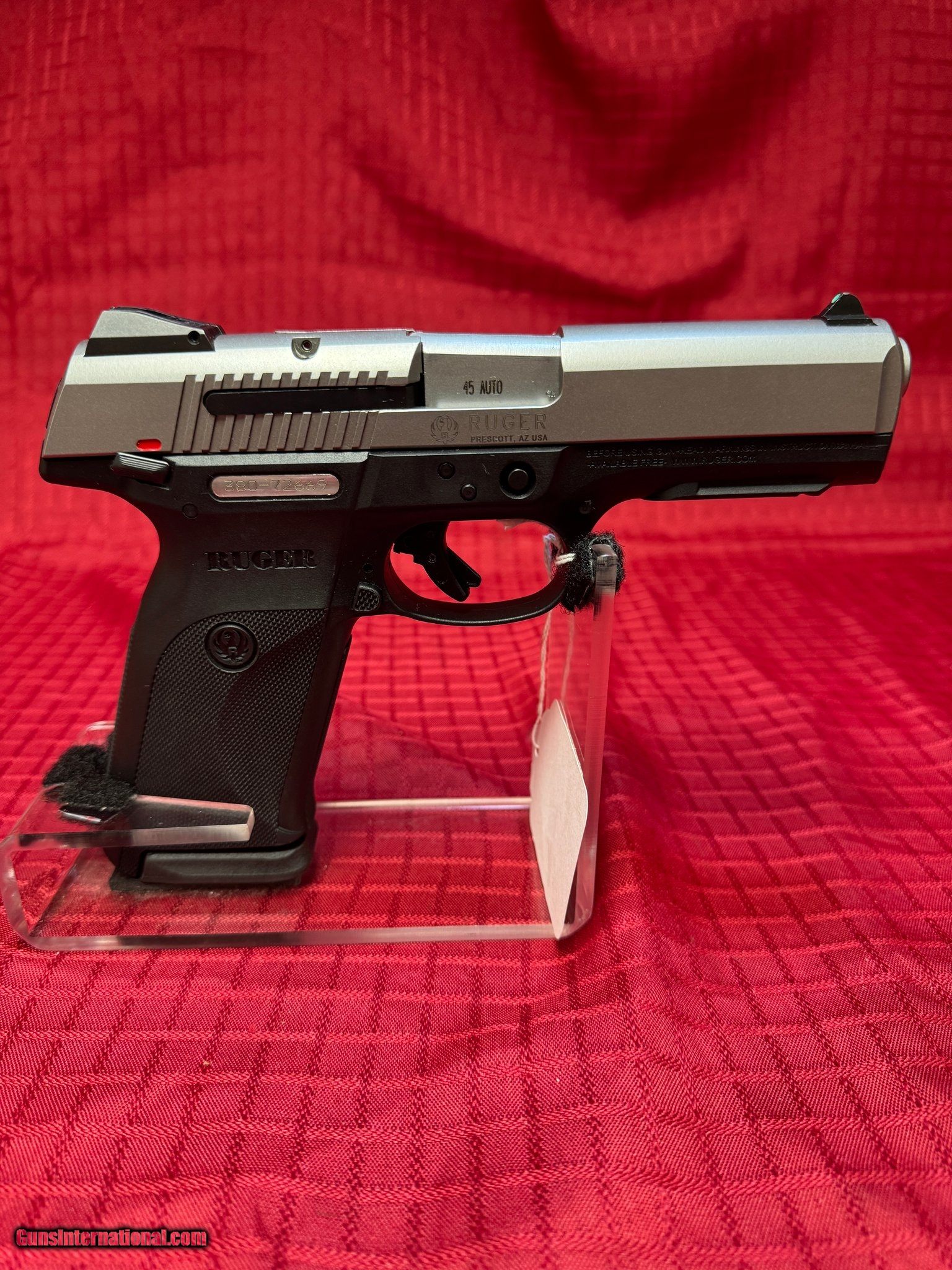 Description: Guns Listing ID: 542835 RUGER SR45 - .45 ACP - ONE MAGAZINE - 10 ROUNDS, 4.5 \"BARREL The Ruger SR45 is a semi-automatic pistol chambered in .45 ACP, known for its slim, ergonomic profile and ruggedness. It features a striker-fired action, a 4.5-inch barrel, and a 10+1 round capacity. Reviewers generally praise its comfortable grip, manageable recoil, and accuracy. This SR45 has been well taken care of and looks like it did when new. Manufacturer: RUGER Model: SR22 Caliber: .45 ACP Magazines: ONE - 10 RDS Sights: ADJUSTABLE 3 DOT Weight: 28 OZ Overall Length: 8\" Barrel Length: 4.5\" SERIAL NUMBER: 380-72669 SKU NUMBER: DJ1031294 SOLD Manufacturer: RUGER Model: SR45 Caliber Info: .45 ACP Condition: Used - Non-Certified Barrels: 4.5 BARREL Action: SEMI AUTOMATIC Finish: black & silver |