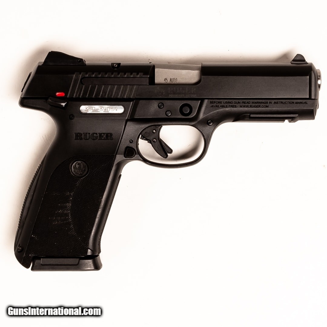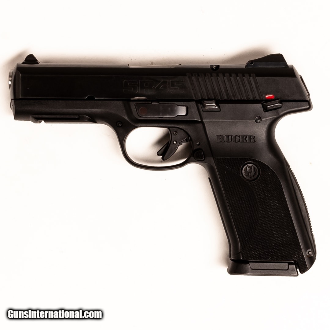Description: Guns Listing ID: 616457 Affordable, powerful, and dependable, the Ruger SR45 is an excellent self-defense pistol. It’s chambered in the iconic hard-hitting 45 ACP cartridge and features an external manual safety to help prevent accidental discharge. 2-10 round magazines and a magazine loader are included. SOLD Manufacturer: RUGER Model: SR45 Caliber Info: .45 ACP Condition: Used - Certified Barrels: 4.5 barrel |