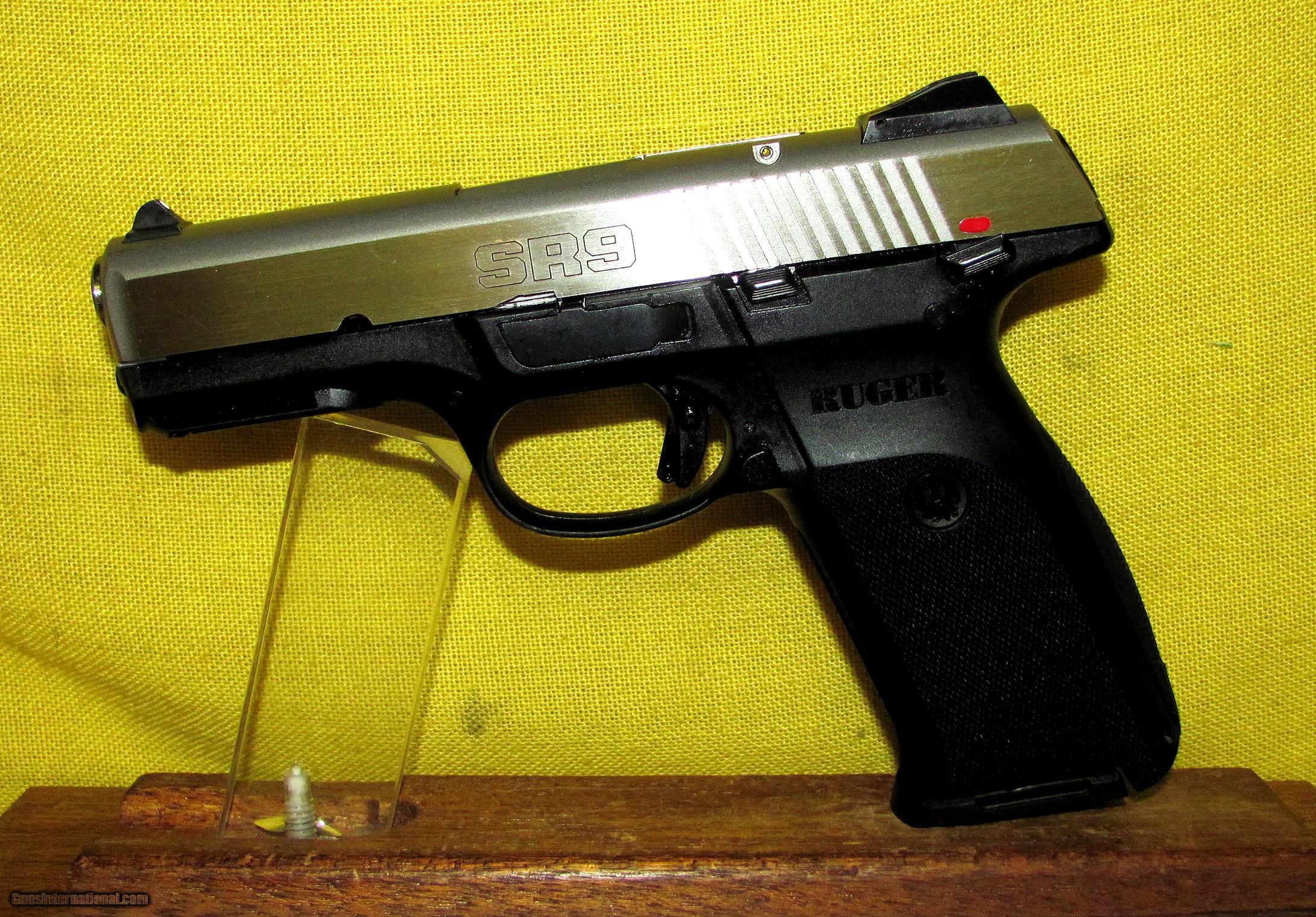 Description: RUGER model SR9 in 9MM CAL., with 4" barrel. Color TWO TONE. RUGER MODEL SR-9, STAINLESS STEEL SLIDE, MIRROR BORE, EXCELLENT LIKE NEW GRIPS, 98%+ FACTORY FINISH, COMES WITH ONE SEVENTEEN ROUND FACTORY MAGAZINE, LIKE NEW CONDITION. OUR NEW STOCK # D31831 Condition 98%+ LIKE NEW. Serial number 335-18175. SOLD |
