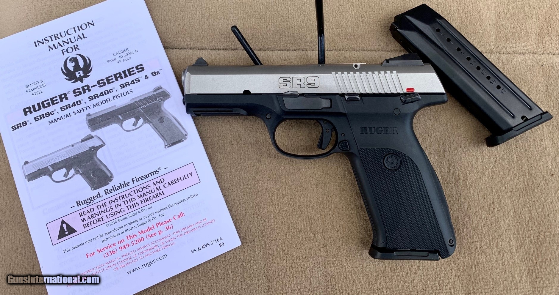 Description: Guns Listing ID: 505158 Like new and unfired condition Ruger Model SR9 Standard with black polymer frame, stainless steel slide and 4.1\" stainless barrel. This double-action only, striker-fired pistol was manufactured in 2019 and features 3-dot white sights, adjustable rear sights, tactical rail, ambidextrous manual safety, ambidextrous magazine release, loaded chamber indicator, striker indicator and fully textured grip. Owner‚‚s manual included. No original box. Pristine condition SOLD Manufacturer: RUGER Model: SR9 Caliber Info: 9MM Condition: Used - Non-Certified Barrels: 4.1 barrel |