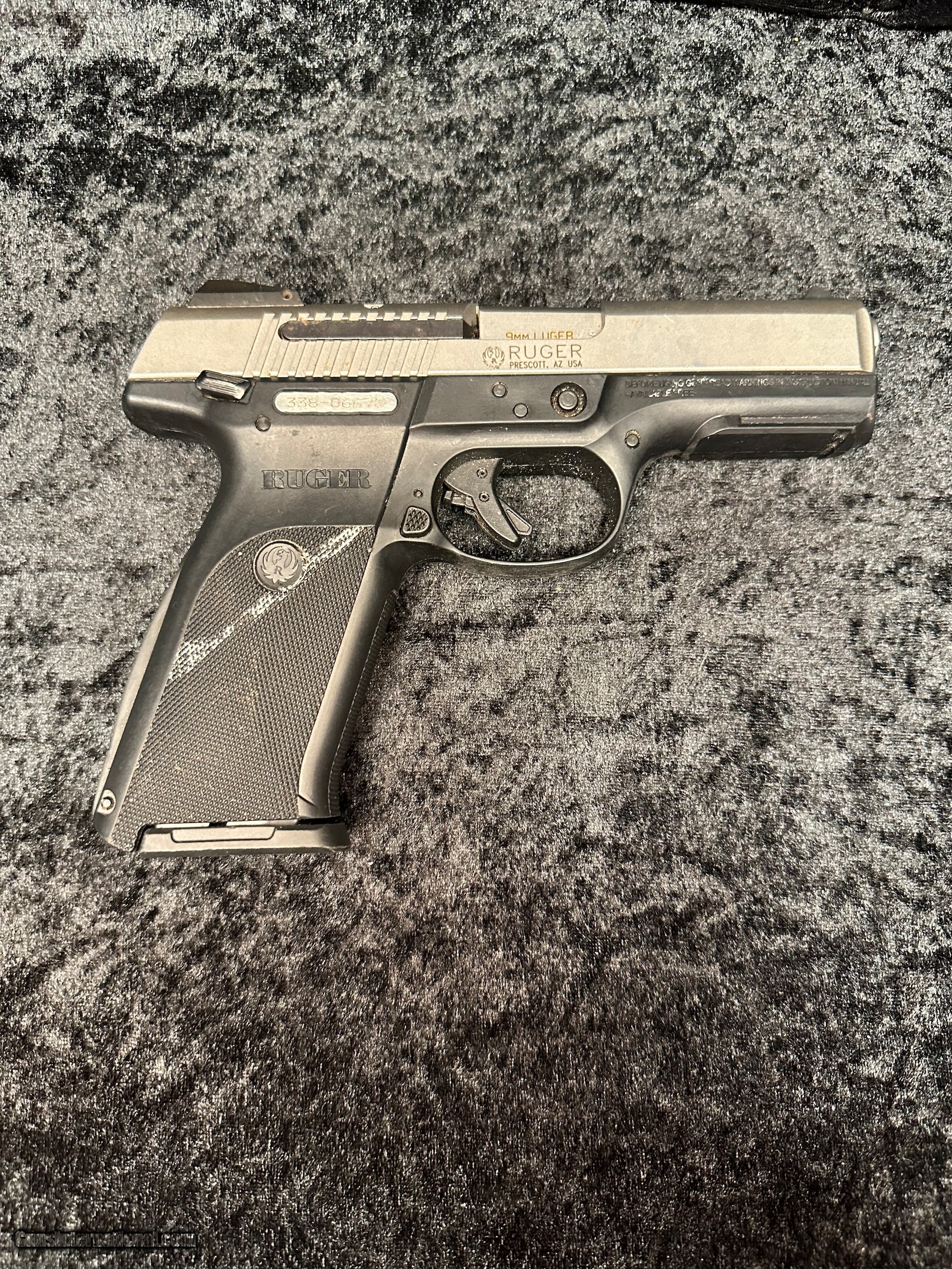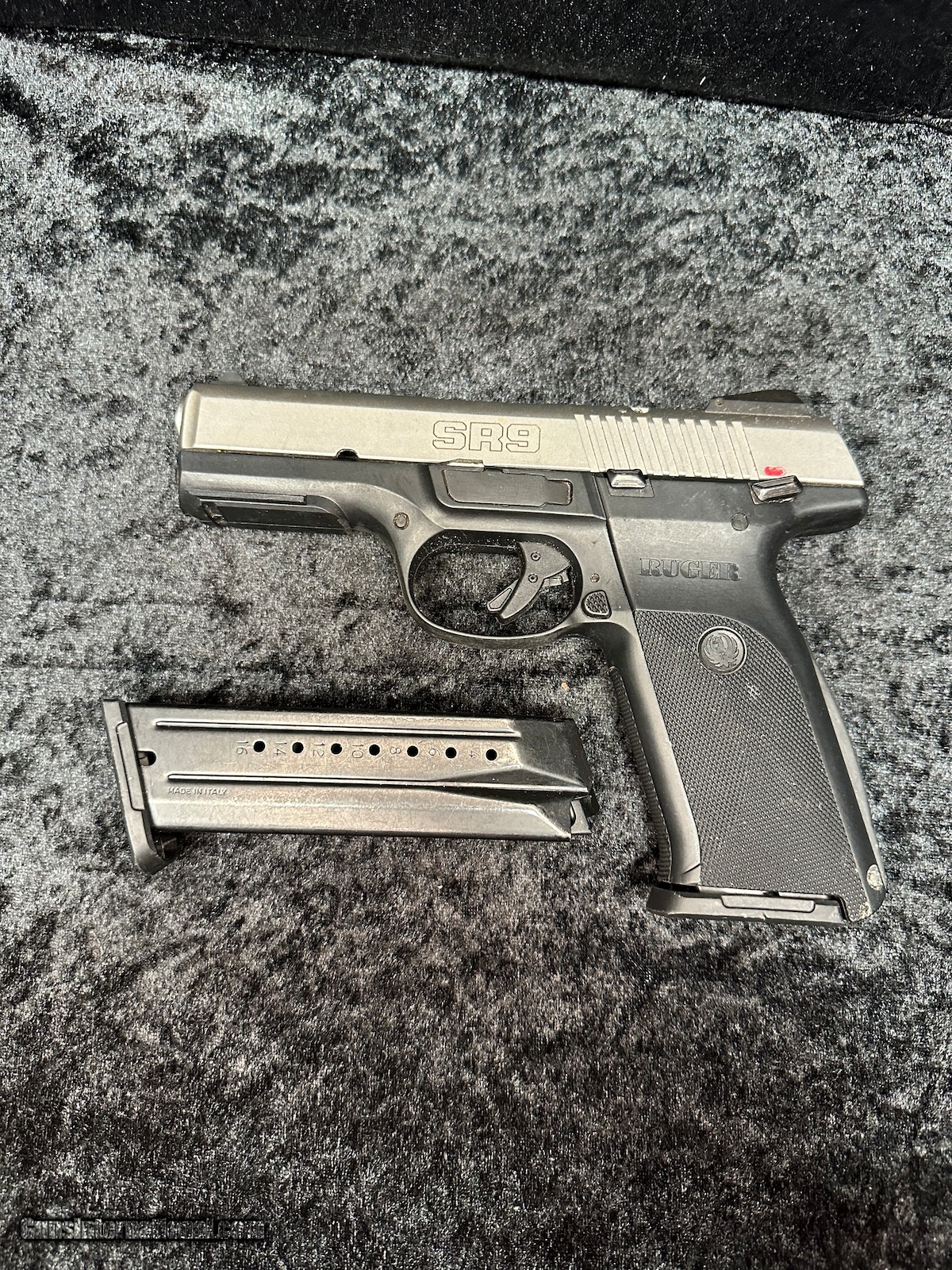 Description: Guns Listing ID: 664570 Overall good condition on this Ruger SR9. There are a few spots that require cleaning (pictured). Comes with 1-17 RND magazine. SOLD Manufacturer: RUGER Model: SR9 Caliber Info: 9MM Condition: Used - Non-Certified Barrels: 4 BARREL Finish: STAINLESS AND BLACK |