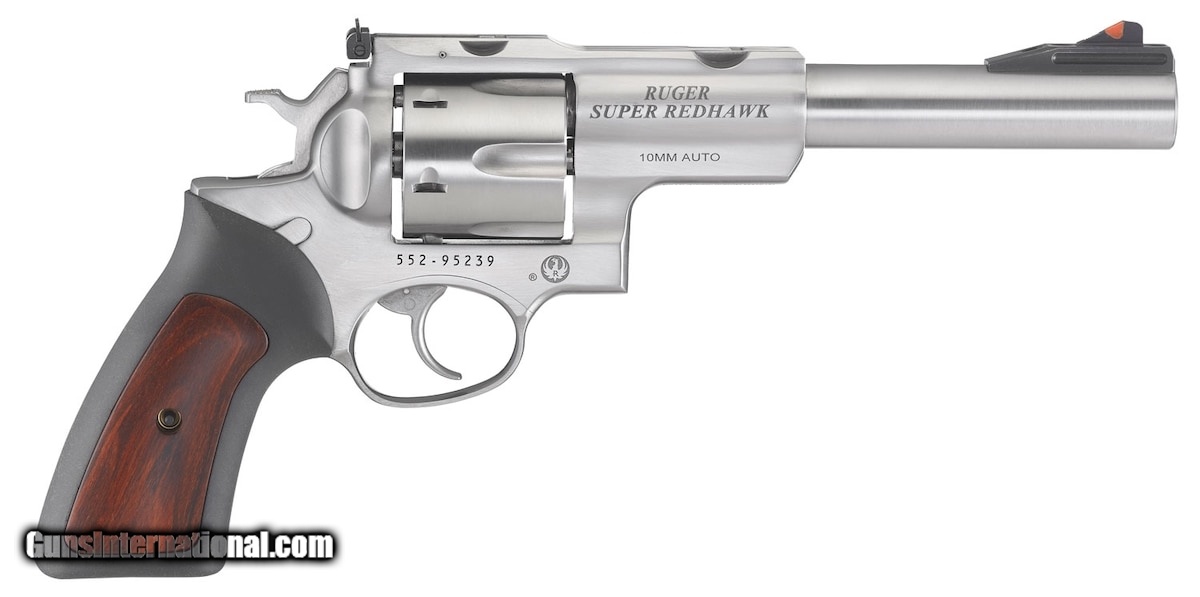 Description: Guns Listing ID: 627724 This Super Redhawk features a corrosion-resistant stainless steel finish, adjustable rear and fixed front sights, a 6.5\" cold hammer-forged barrel, and it come with 3 full moon clips that act as both a speedloader and aid in the ejection of the spent cartridges. SOLD Manufacturer: RUGER Model: SUPER REDHAWK Caliber Info: 10MM Condition: new Barrels: 6.5 BARREL |