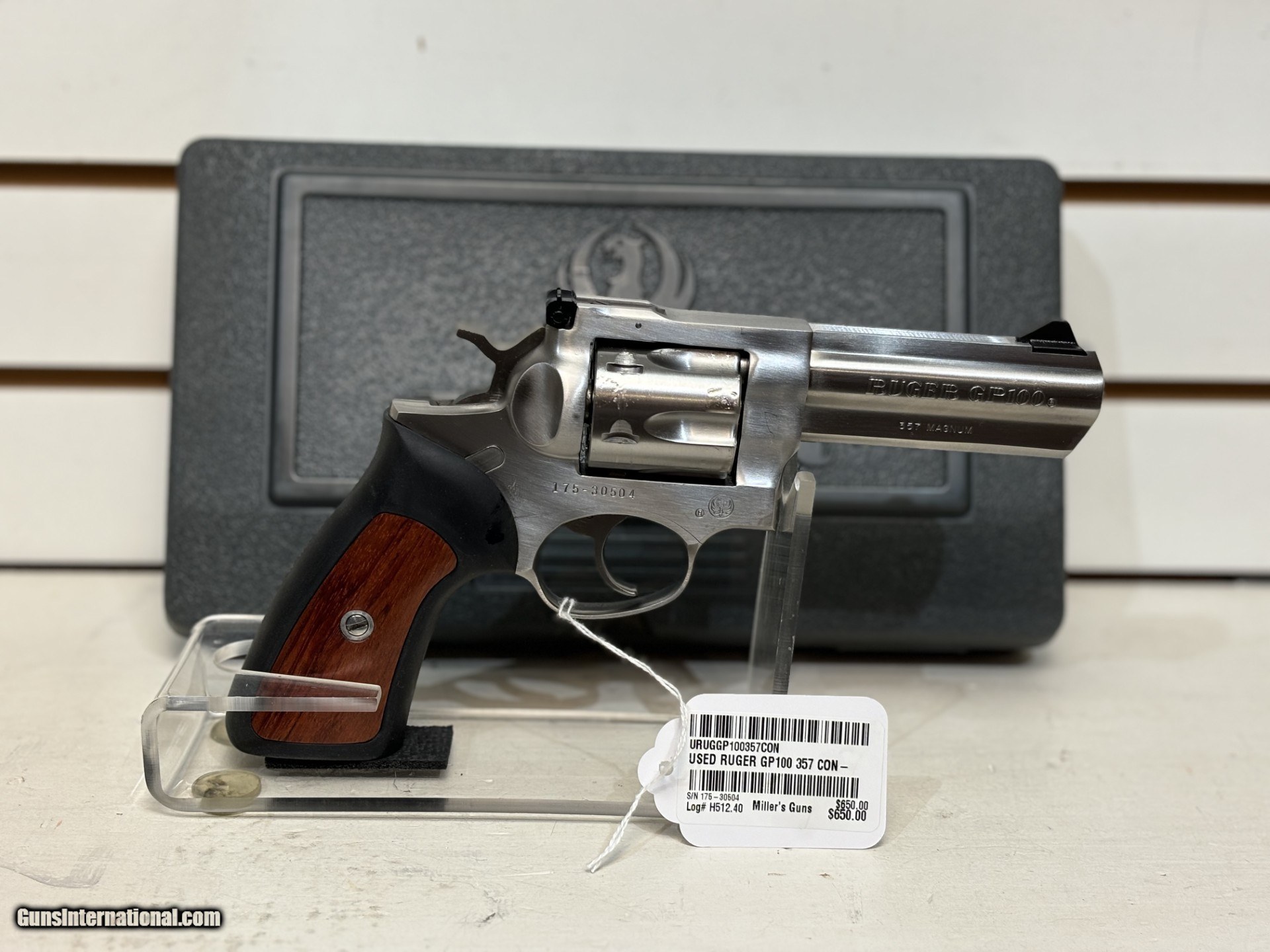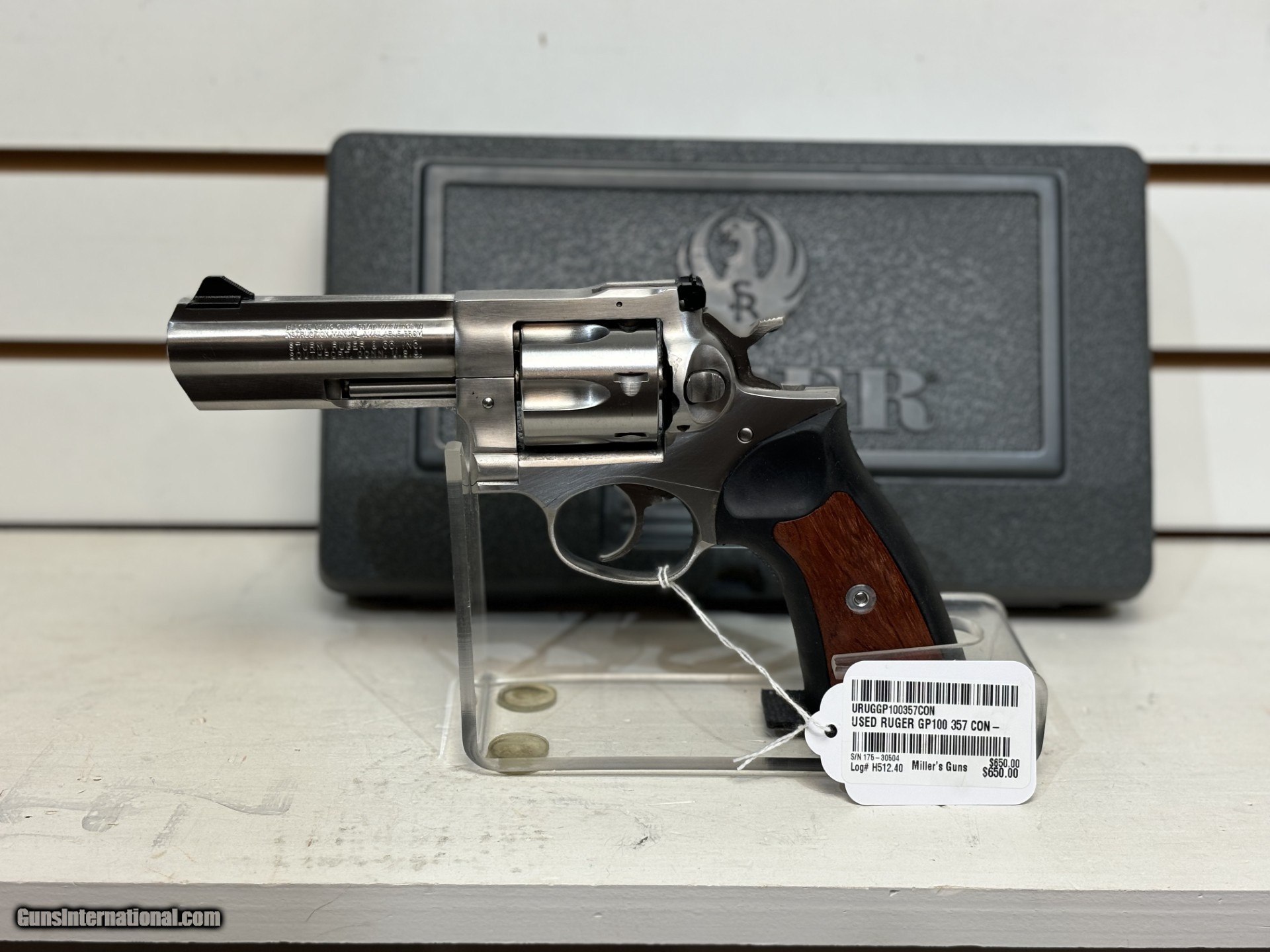 Description: USED Ruger GP100 .357 Magnum / .38 Special 4.2" barrel 6 round capacity SA/DA Cushioned rubber grips with hardwood insert SOLD Handgun Caliber: .357 Magnum Manufacturer: Ruger Model: GP100 Serial Number: 175-30504 Condition: NEW |