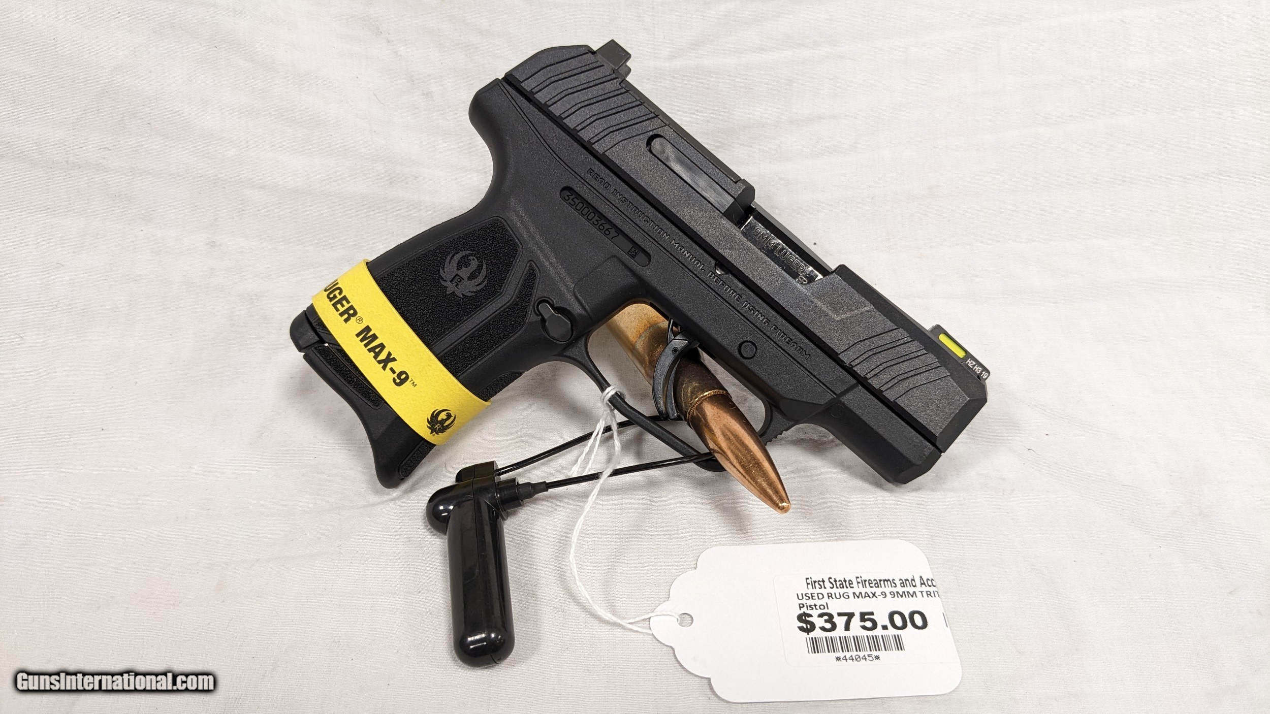Description: This is a used item. While we do not test fire our used firearms, we perform an inspection and function check to determine the firearm is fully functional to the best of our ability. Please call with any questions. If you are interested in purchasing this item, please give us a call. Please have the "Seller #" and/or "Guns International #" ready along with the contact information for the FFL you'd like the item shipped to. For Sale from First State Firearms & Accessories AKA The Gun Shop in New Castle, DE. Shipping is $25.00. SOLD Handgun Caliber: 9x19mm Parabellum (9mm Luger, 9x19mm NATO) Manufacturer: RUGER Model: MAX-9 Serial Number: 350003667 Condition: USED, GOOD Action: SEMI-AUTO |
