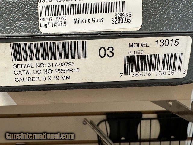 Description: Ruger P95 9mm Black, with box, 2 magazines Description - FAMILY:P Pistol Series - MODEL:P95 - TYPE:Semi-Auto Pistol - ACTION:Double / Single Action - FINISH:Black - STOCK/FRAME:Polymer Frame - CALIBER/GAUGE:9mm - MAGAZINE DESC:15 rd. - BARREL:3.9" - OVERALL LENGTH:7.25" UPC#: 736676130153 Buyer pays shipping Millers Gun Center Located in New Castle, Delaware "Home of TAX-Free shopping" No Credit Card Fees Send Gun international inquiry and then call 302-328-9747 to complete your purchase SOLD Handgun Caliber: 9x19mm Parabellum (9mm Luger, 9x19mm NATO) Manufacturer: Ruger Model: P95 Serial Number: 317-93795 |