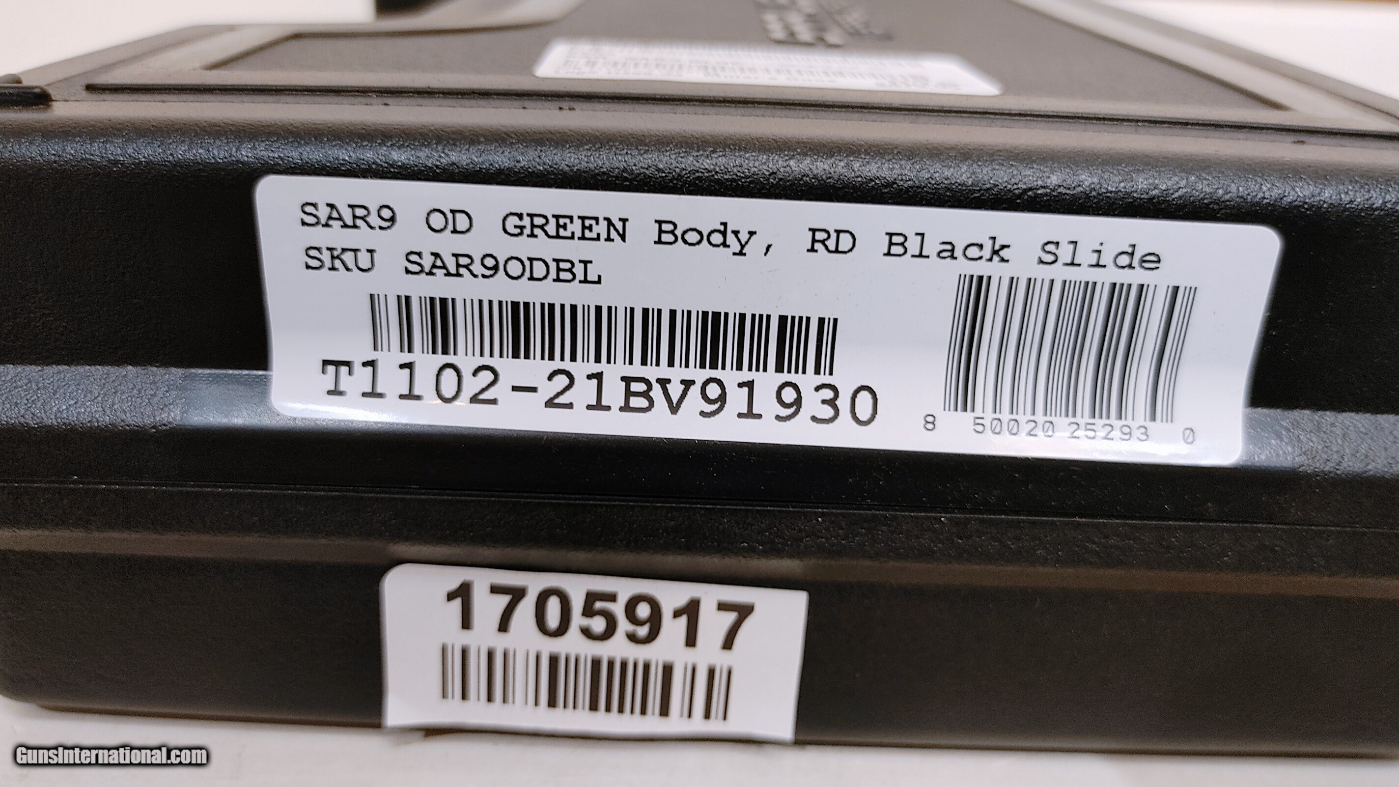 new SAR USA SAR9 OD Green 9mm SARSAR9ODBL new in hardcase