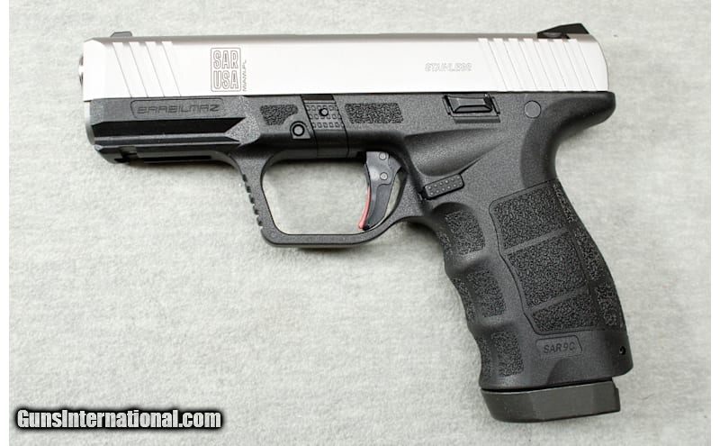 Description: The SAR 9C Semi-Auto Pistol brings the perfect balance desired between micro-sized pistols and full-size pistols. The SAR 9C has a hammer-forged barrel and features a recessed crown. The slide has front and rear cocking serrations for control during weapon manipulation. The polymer frame features grip texture, finger grooves, and an accessory rail to attach a weapon light. The striker-fired trigger features a trigger safety. SAR USA brings a no-nonsense approach to this excellent offering in the carry-sized pistol market. This example comes with the original box and two magazines. Finish is very good showing no wear. 9mm Luger SOLD Metal Condition: very good Bore Condition: bright Barrels: 4" barrel Weight: 1 lb 12 0z Sights: white dot sights Item Location: La Vista, NE |