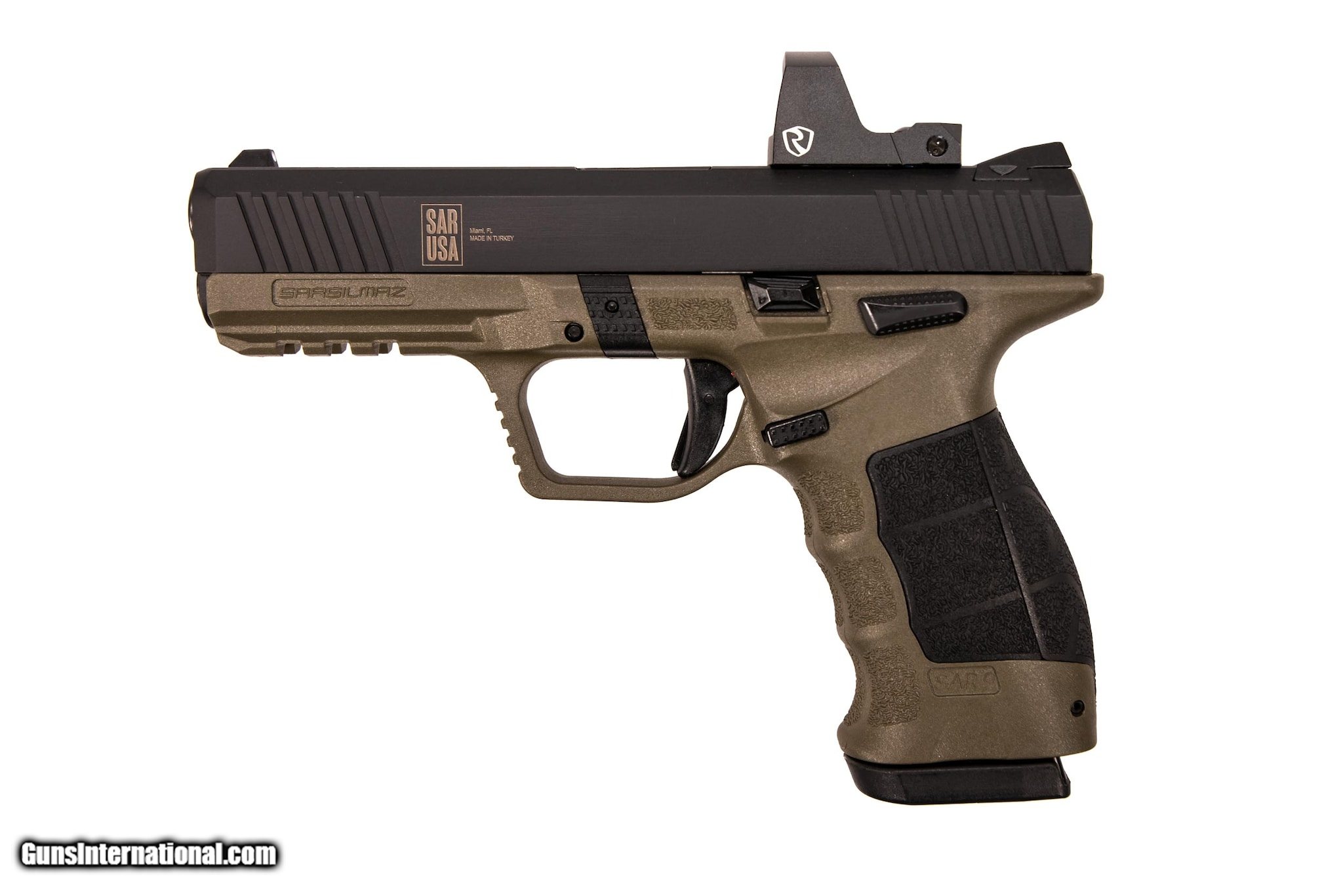 Description: Guns Listing ID: prod215110 The SAR9 METE with its new generation lightweight polymer frame stands out with its featherweight 750 grams. The pistol is produced with a forged ally steel barrel and slide, and offers three SOLD Manufacturer: SAR ARMS Model: METE Caliber Info: 9MM LUGER (9X19 PARA) Condition: new Barrels: 4.4 BARREL Finish: BLACK & GREEN |