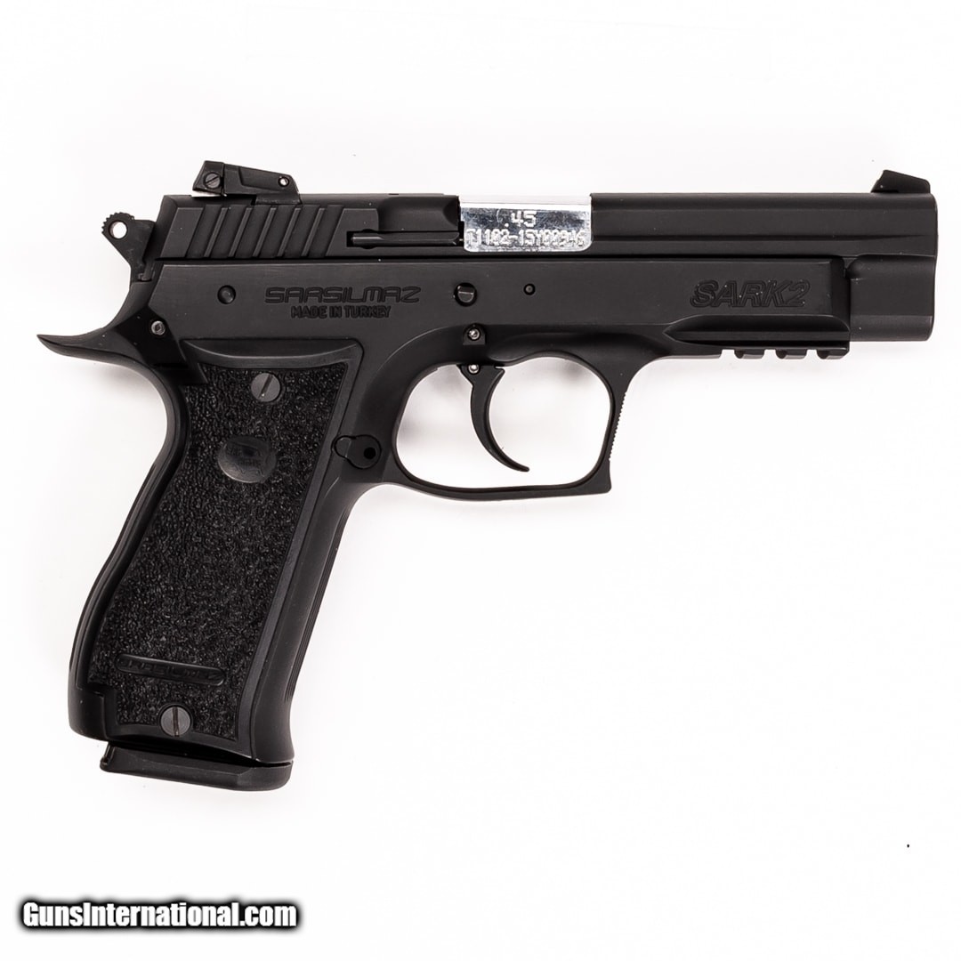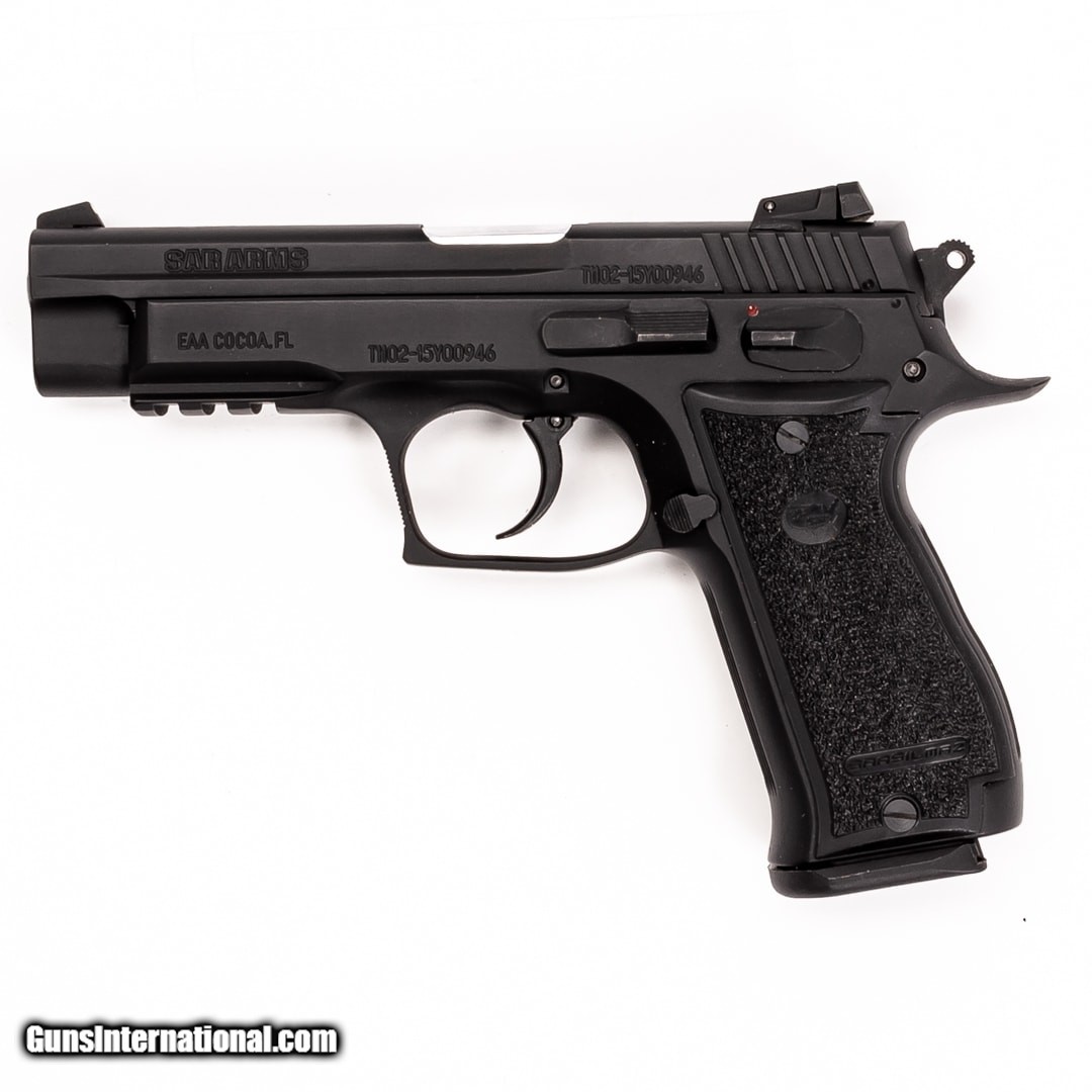 Description: Guns Listing ID: 319267 With a manual safety, enhanced sights, aggressively textured grips, and superb ergonomics, the Sar Arms SAR K2 is an excellent self-defense sidearm at price point that's hard to beat. This model is chambered in the heavy-hitting 45 ACP cartridge, a favorite caliber for personal protection. The original case, 1-14 round magazine, and a manual are included. SOLD Manufacturer: SAR ARMS Model: SAR K2 Caliber Info: 45 ACP Condition: Used - Certified Barrels: 4.5 BARREL Finish: BLACK |