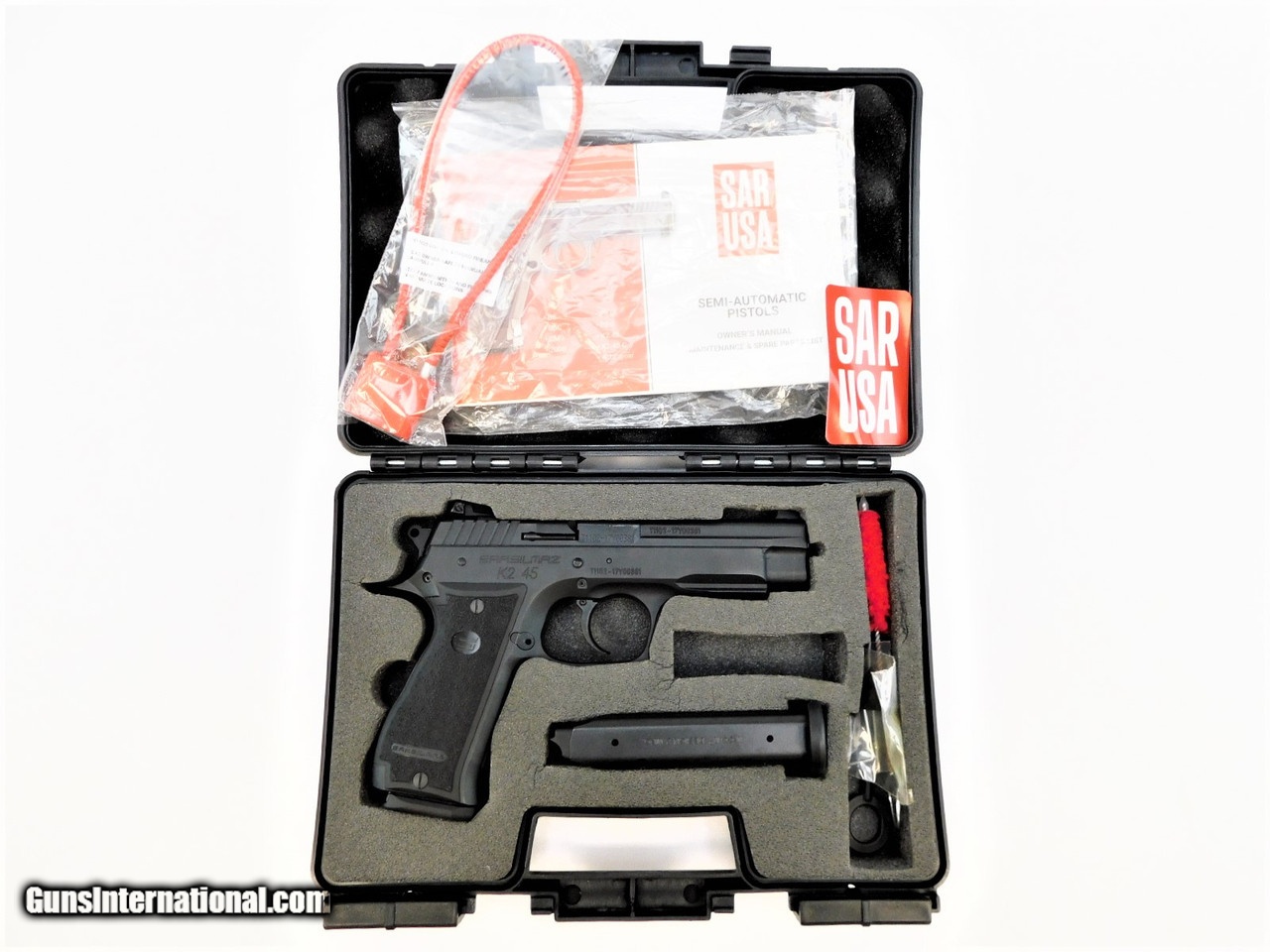 Description: Manufacturer: SAR Arms USA Model: K2-45 Serial Number: T1102-17Y00381 Action: Semi-Automatic Caliber: .45 ACP / AUTO Barrel Length: 4.7" Stainless Steel Capacity: (2) 14 Round Magazines Frame: Steel, Black Grips: Black Polymer Overall Length: 8.3" Weight: 40.2 oz Sight: 3-Dot, Adjustable Rear Includes: Factory Hard Case, Cleaning Accessories & Manual This firearm was displayed in a demo expo showing off the features that SAR-USA has to offer. This firearm is brand new and may have been fired outside the factory for demonstration purposes. These models may have extremely minor handling marks. Any handling marks or blemishes will be pointed out with red arrows in the pictures above if present. Pictures above are of the actual firearm you'll be receiving! SOLD |