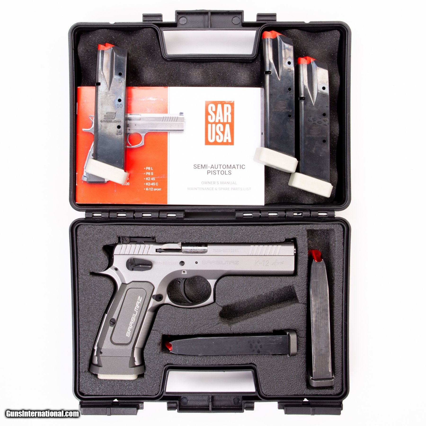 Description: Guns Listing ID: 1388433 This K12 Sport features six 17-round magazines, the original case, owner‚‚s manual, an adjustable rear sight and a thumb safety. Get the best bang for your buck when you get a Certified Used Firearm . When you see the Certified Used stamp on any of our firearms, you can be confident that you’re getting exactly what you want – a gun only in very good to excellent condition and held to the highest quality standard. All Certified Used Guns come with a ‘no questions asked’ return policy . PLUS, ALL CERTIFIED USED GUNS SHIP FREE SOLD Manufacturer: SAR FIREARMS Model: K-12 SPORT Caliber Info: 9MM LUGER (9X19 PARA) Condition: Used - Non-Certified Barrels: 4.7 BARREL Finish: STAINLESS |