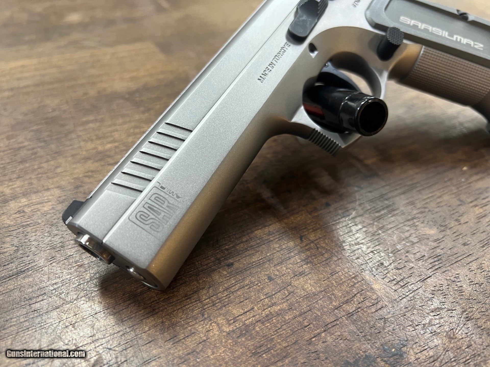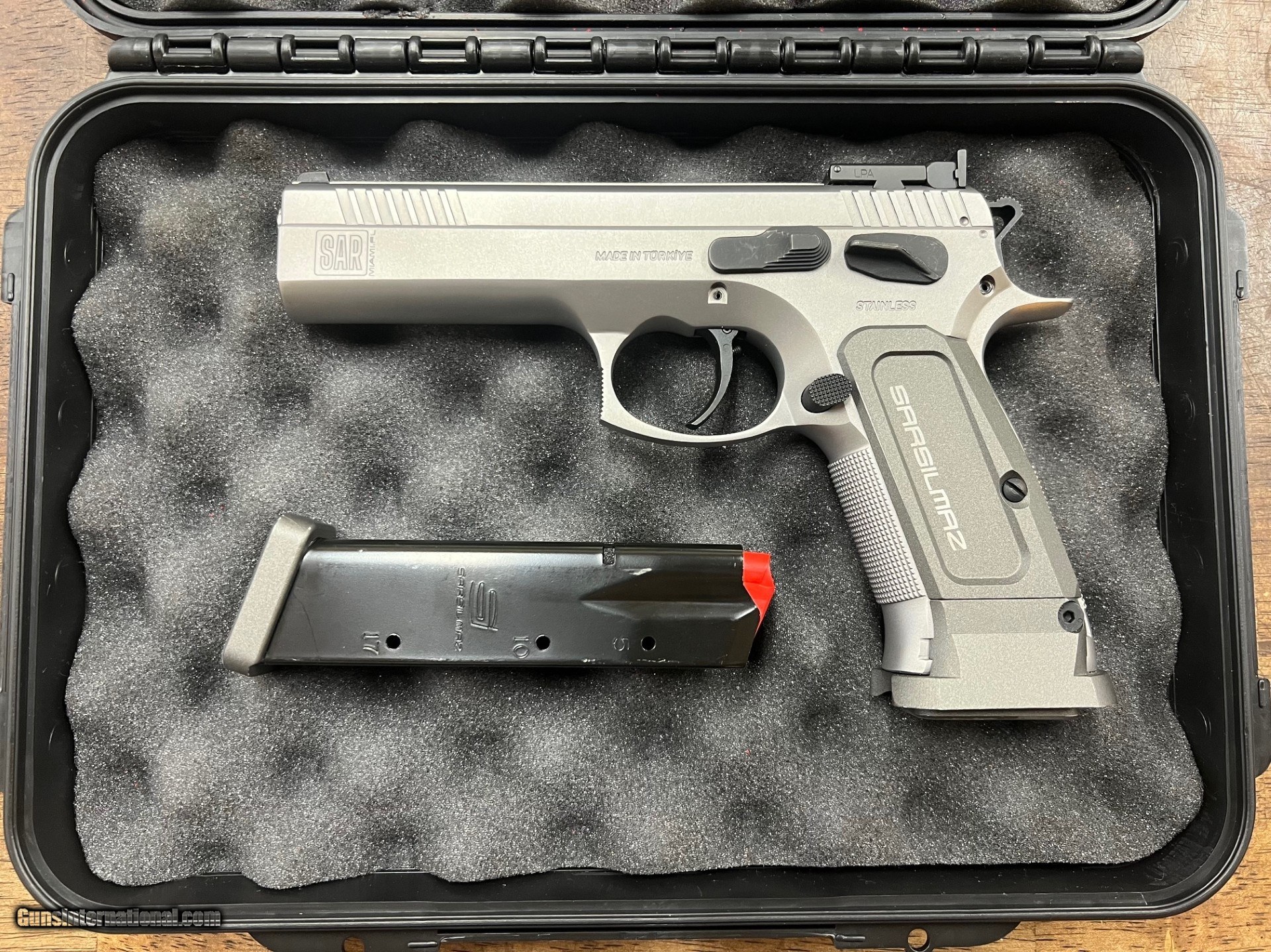 Description: Guns Listing ID: 494872 SARSILMAZ K12 SPORT PISTOL W/ OG BOX & 2 MAGS, SERIAL NUMBER T1102-22BR03125, STAINLESS, 4.5\" BARREL, 9MM, SEMI - AUTOMATIC. OVERALL LENGTH: 8.5 INCHES. WEIGHT: 2.7 LBS W/ MAG. SOLD Manufacturer: SAR FIREARMS Model: K-12 SPORT STAINLESS Caliber Info: 9MM LUGER (9x19 PARA) Condition: Used - Non-Certified Barrels: 4.5 BARREL Finish: matte stainless |
