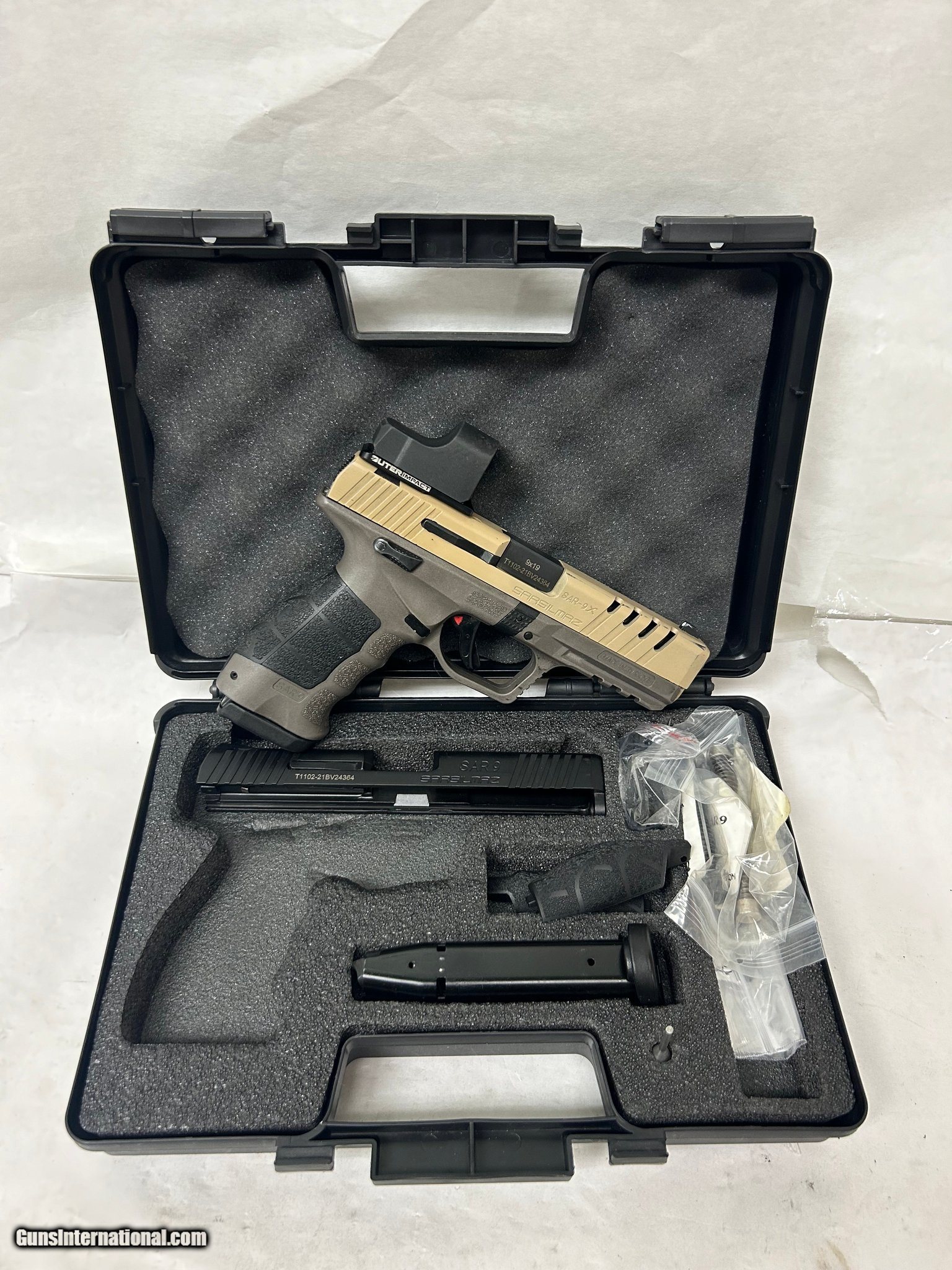 Description: Guns Listing ID: 495916 Comes with 2x(17 Round) magazine, factory soft case ,extra slide & bushnell red dot . Refer to photos for accessories & condition. Manufacture: SAR Firearms Model:SAR-9X Caliber: 9mm x19 Capacity: 17 Rounds Action: Semi-Automatic Barrel Length: 4.5 Inches Finish: Dark earth/tan Sights: Factory Safety: Yes Serial Number: T1102-21BV24364 ((Y)) SOLD Manufacturer: SAR FIREARMS Model: SAR-9X Caliber Info: 9MM LUGER (9x19 PARA) Condition: Used - Non-Certified Barrels: 4.5 BARREL Action: SEMI AUTOMATIC Finish: flat dark earth |